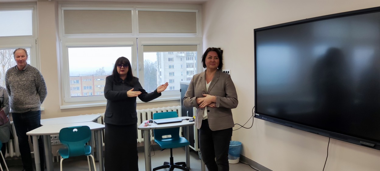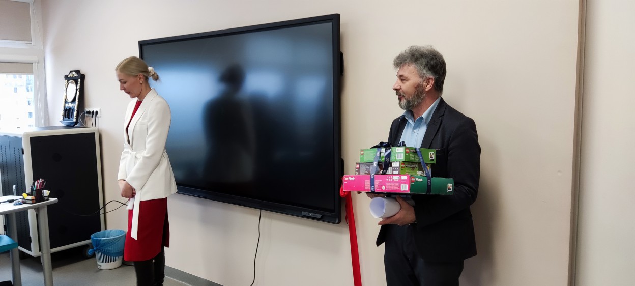 Progimnazijos direktorė Olga Mediekšė kartu su vicemere Birute Gailiene iškilmingai perkirpo modernios, šiuolaikiškai įrengtos erdvės veiklos pradžią simbolizuojančią juostą. Anot O. Mediekšės, tai – istorinis momentas. Kaip sveikinimo kalboje sakė vicemerė, šioje klasėje išmoktos pamokos ir įgytos žinios pravers net ir kasdienybėje.