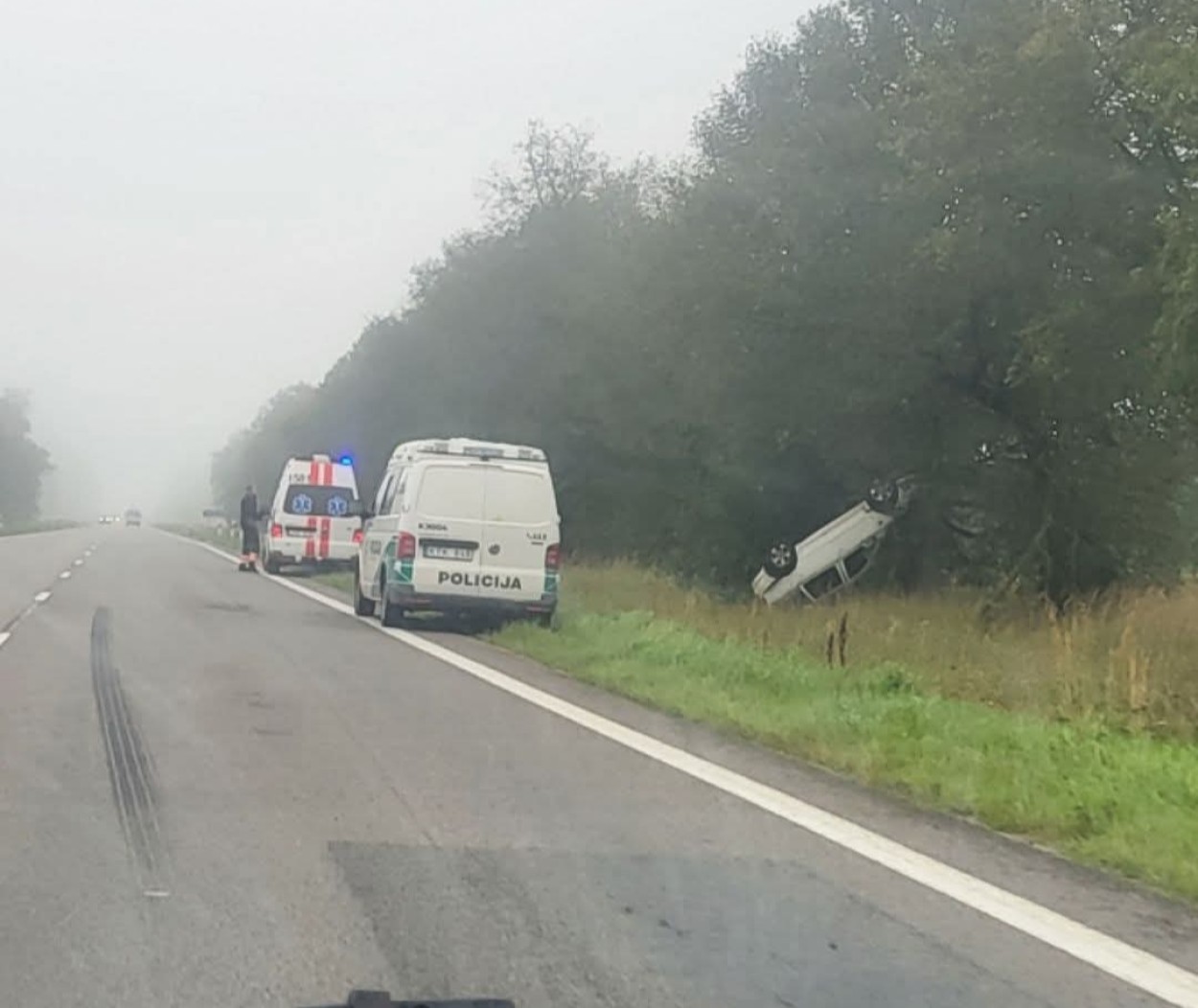 Automobilį vairavęs jaunas vyras, gimęs 2005 metais, nesuvaldė transporto priemonės – ji nuvažiavo nuo kelio ir vertėsi.