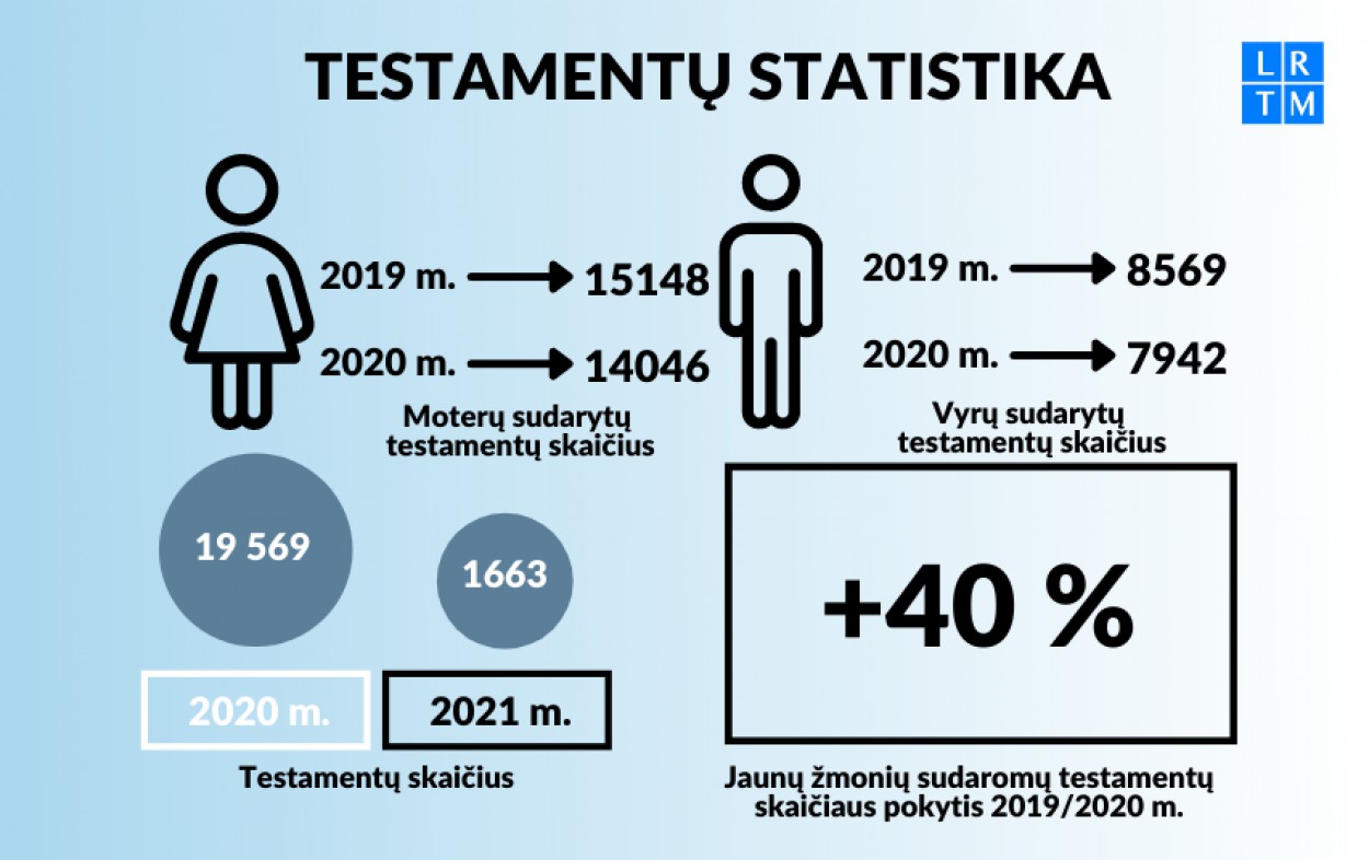 2020 metais moterys sudarė apie 14 tūkstančių testamentų, vyrai – apie 8 tūkstančius.