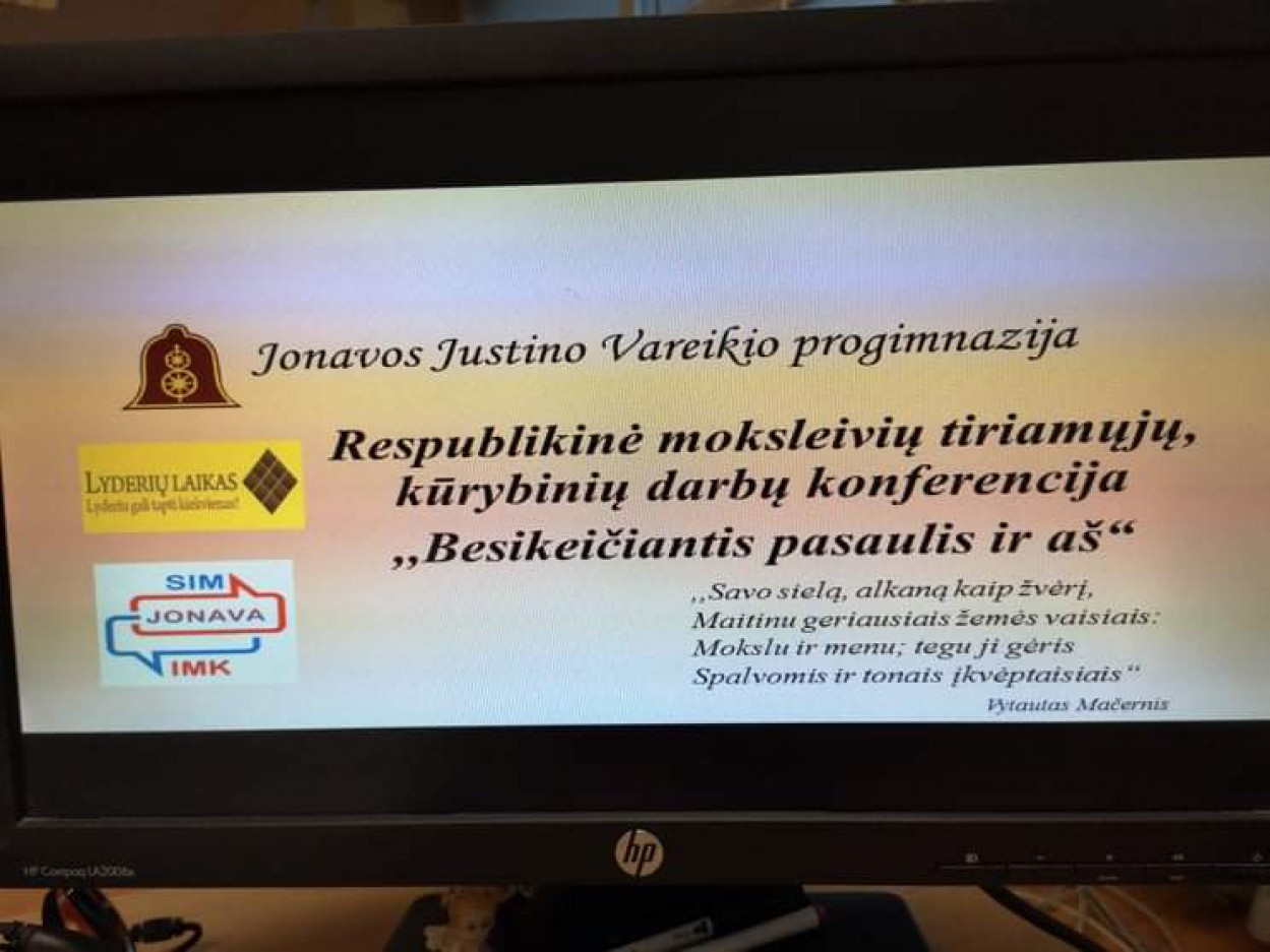 Lapkričio 12 dieną Jonavos Justino Vareikio progimnazija jaunuosius tyrėjus sukvietė į respublikinę moksleivių tiriamųjų, kūrybinių darbų konferenciją ,,Besikeičiantis pasaulis ir aš”, kuri vyko nuotoliniu būdu.