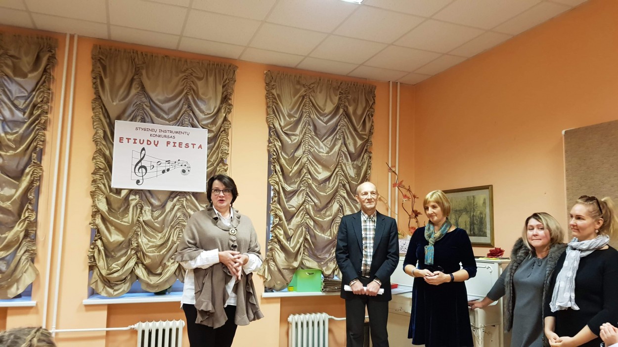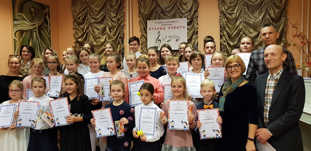 Konkurso „Etiudų fiesta“ vertinimo komisija - mokytoja metodininkė Violeta Draskinienė, mokytoja metodininkė Diana Rimkutė ir gitaros mokytojas Aleksandras Dunis, įvertinusi kiekvieno scenoje grojusio ugdytinio pasirodymus, laureatais paskelbė net 25 ugdytinius, diplomantais – 15 jaunųjų stygininkų.