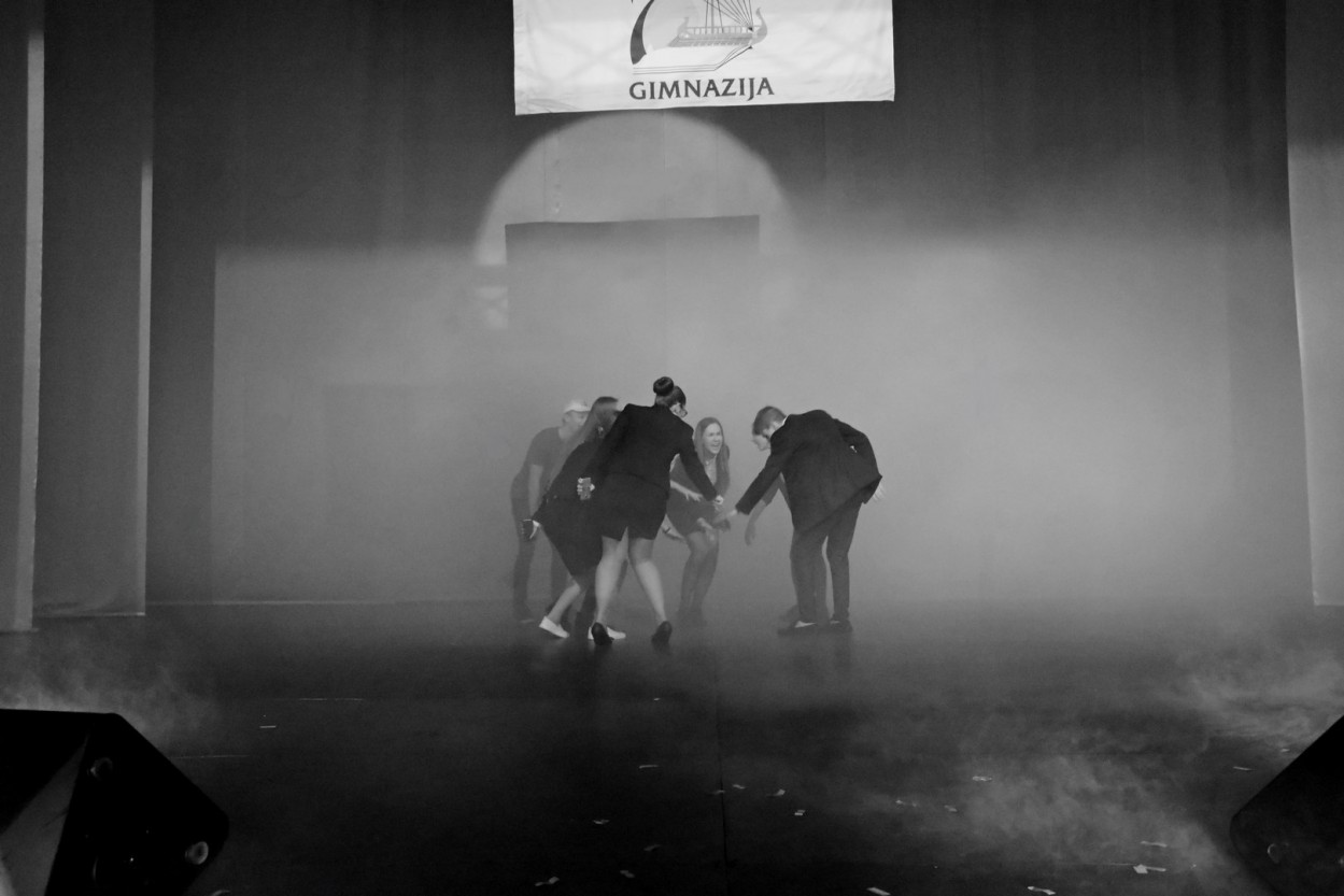Netikėta pasirodė šių dienų mokyklos gyvenimo interpretacija. Naujoji karta į sceną įskriejo riedučiais, važiavo dviračiais ir motociklais, o direktorius Arūnas Rimkus atriedėjo automobiliu.
