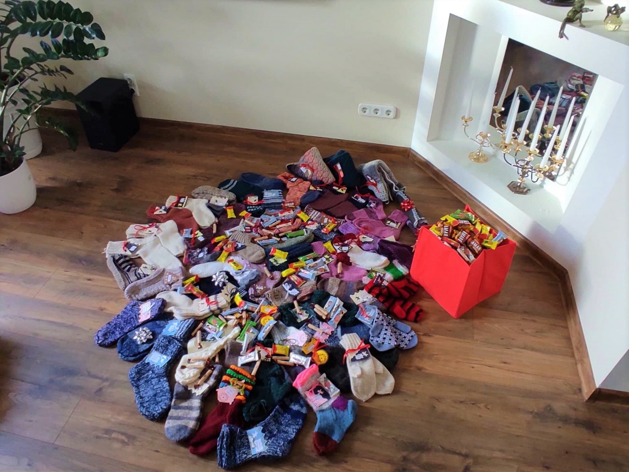 Šokėjai paruošė net 60 dovanėlių (megztų pirštinių ir kojinių)! Prie kiekvienos dovanėlės prisegtas Kalėdinis palinkėjimas ir pridėtas maišelis su saldžiais skanėstais.