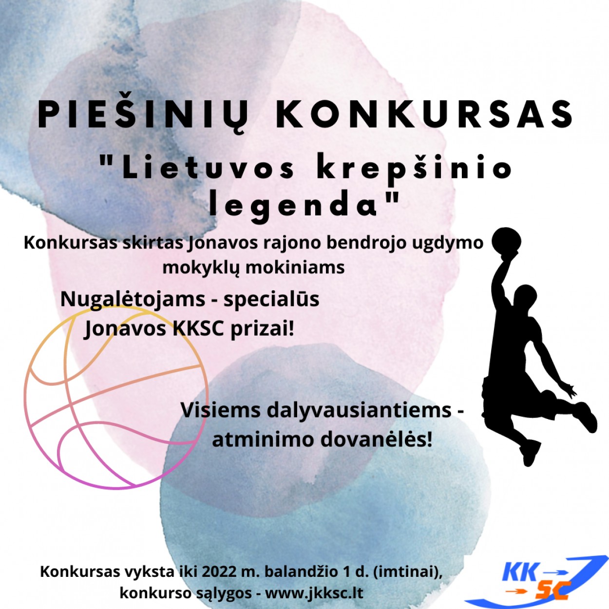 Konkursas vyksta iki 2022 m. balandžio 1 d. (imtinai). Piešinius reiktų nufotografuoti ir jpg formatu siųsti el. paštu : lina@jkksc.lt
