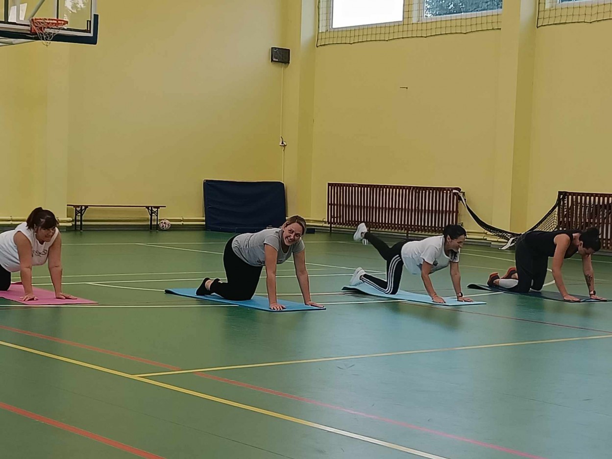 Na, o spalio mėnesį moterų laukė pilates treniruotės, kurias vedė sportinės aerobikos trenerė Jolanta Abramavičienė. Pilates treniruotėse socialiai remtinas vienišas, daugiavaikes ar vaikus globojančias mamas išmokyti geriau pažinti savo kūną, rūpintis savo laikysena, įgyti įgūdžių, taisyklingai stuburo padėčiai kasdieninės veiklos metu.