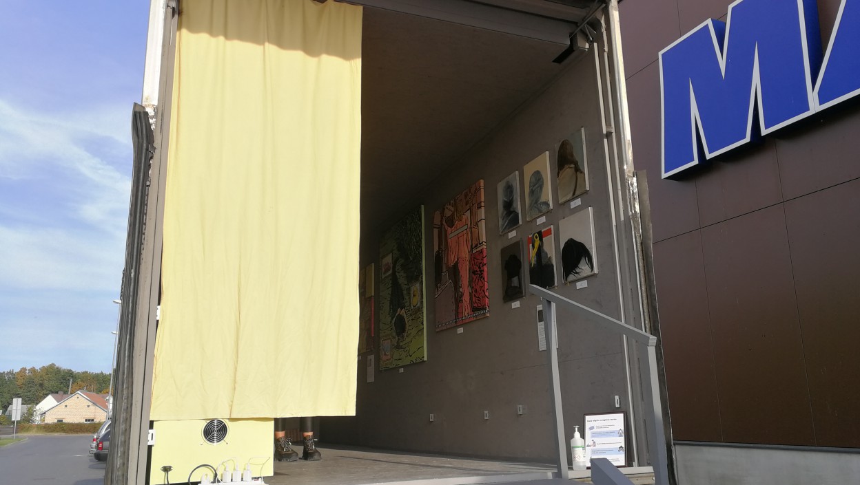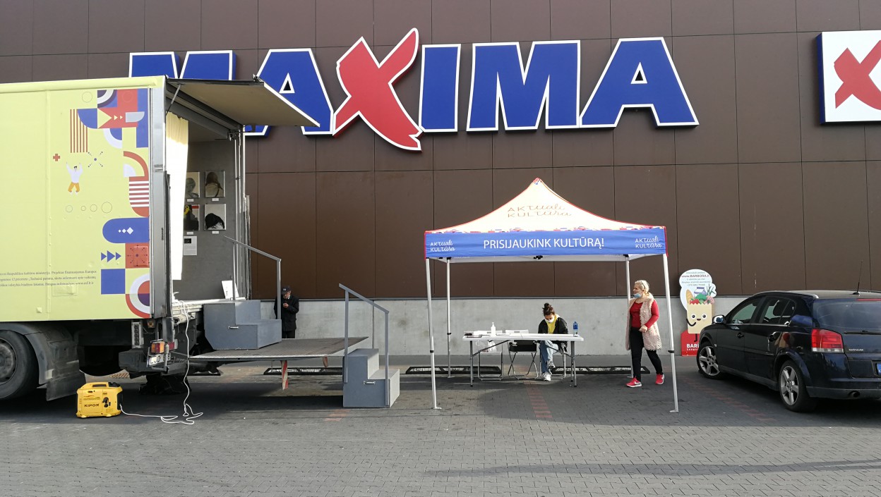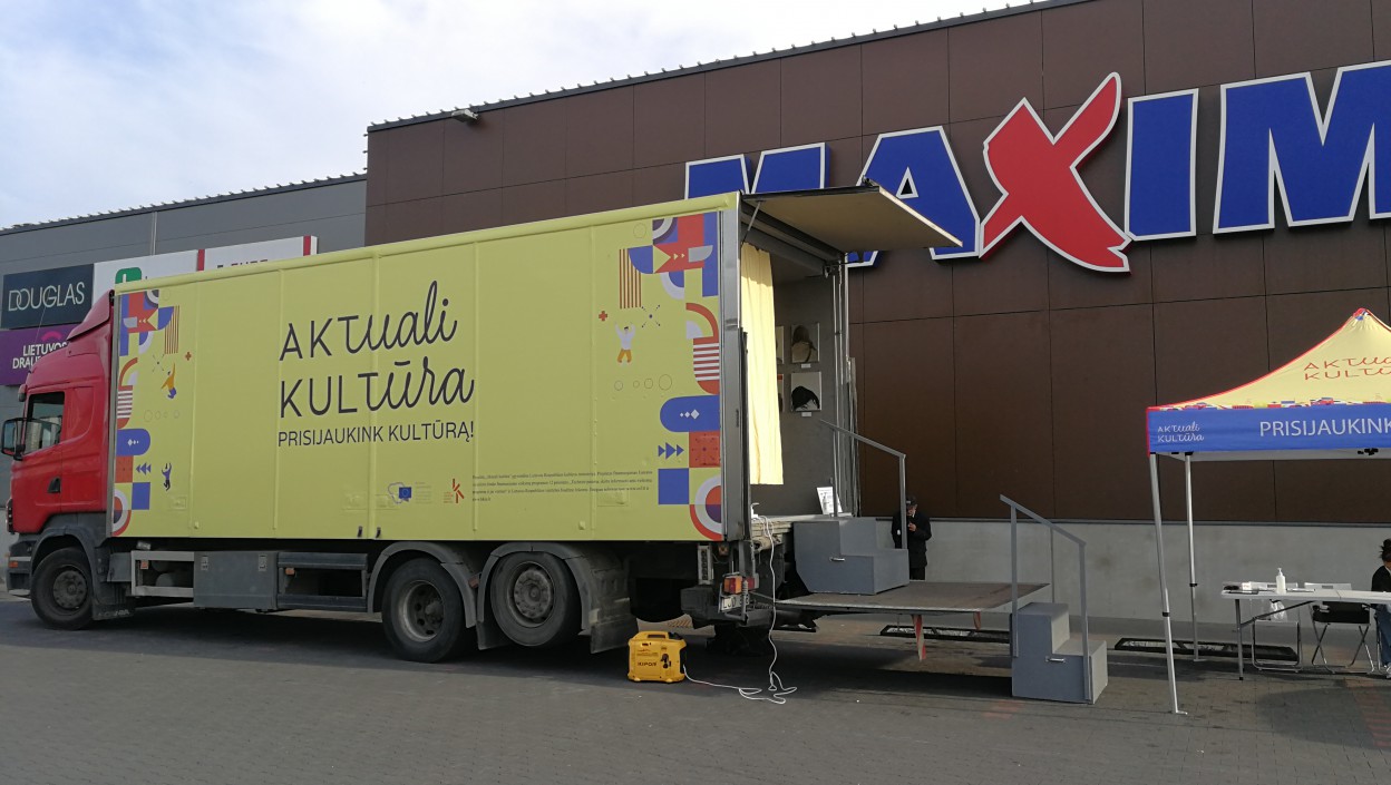 Prekybos centro „Maxima“ automobilių aikštelėje, Plento gatvėje, įsikurdinęs mobilus muziejus ant ratų, kvietė jonaviečius užsukti ir pasidomėti, kas eksponuojama. Gidė atvykusiems lankytojams smulkiai pasakojo apie jau puikiai pažįstamų ir dar tik kūrybinį kelią pradedančių menininkų darbus, jų kūrybos priemones. Kiekvieno pasakojimo metu stabtelėjama ir prie ekspozicijos. Patiems išrankiausiems pasiūlomos virtualios kelionės po atnaujintus Lietuvos muziejus ir dvarus, kultūros įstaigų prisistatymai.