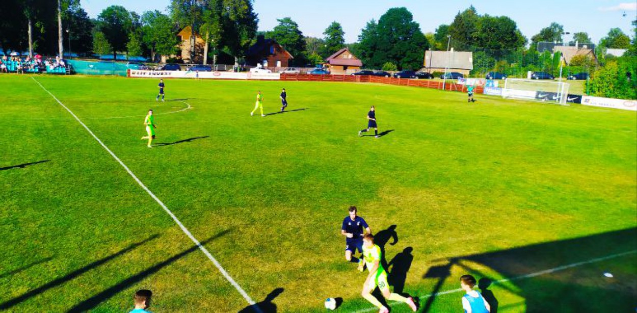 Pagrindinės „Riterių“, žaidžiančių A lygoje, komandos žaidėjais susistiprinę varžovai nuo pat pirmųjų minučių kontroliavo mačo eigą ir greitai išsiveržė į priekį – 11 minutę pasižymėjo Juozas Lubas.