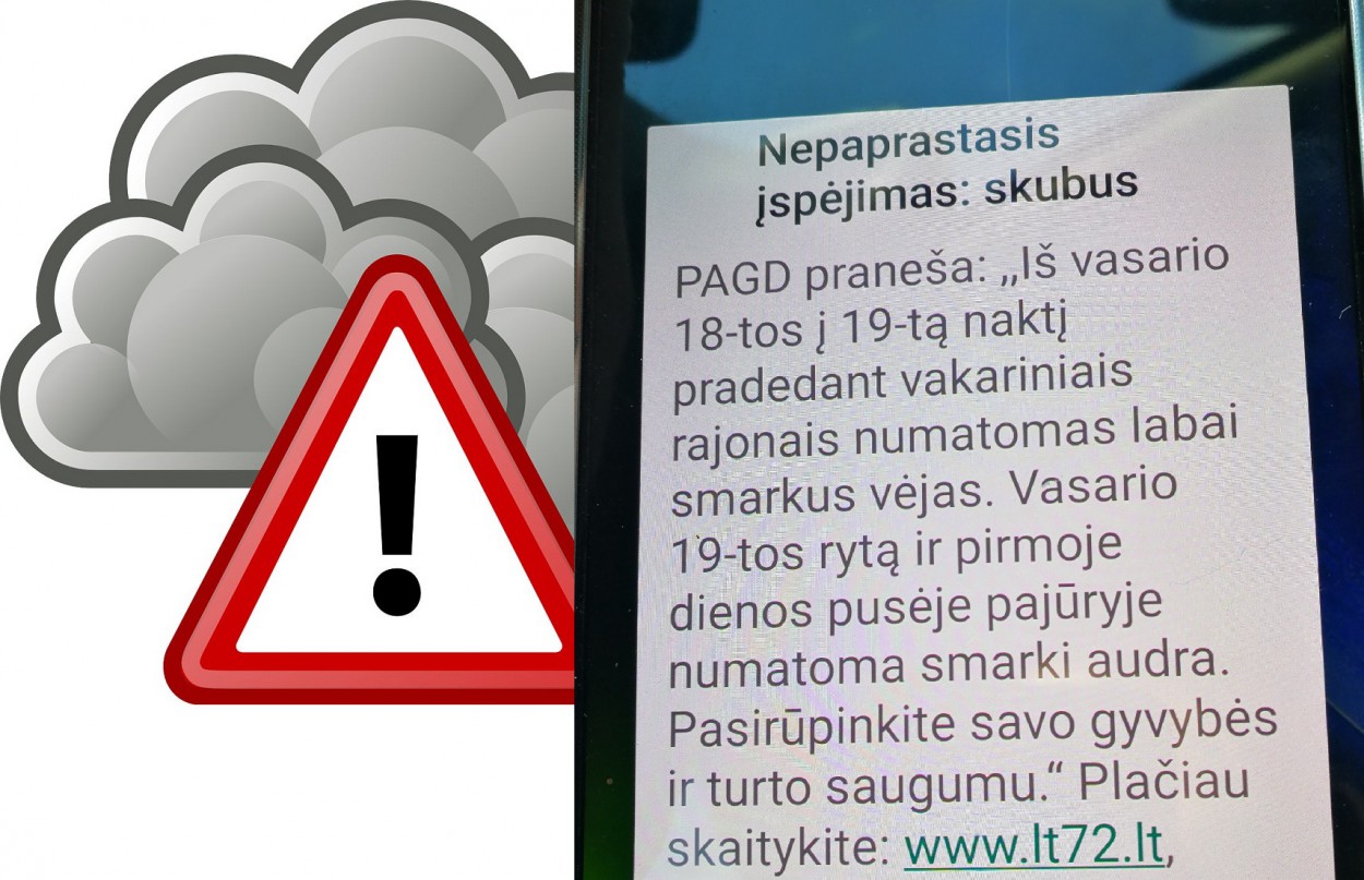 Šiandien, vasario 18-ąją, į mobiliuosius telefonus atsiųstas pranešimas, kuris perspėja, kad iš vasario 18-os į 19-ą vidurnaktį pradedant vakariniais rajonais ims stiprėti pietų, pietvakarių krypties vėjas, gūsiai daug kur bus 16–21 m/s, vietomis 22–27 m/s. Vasario 19 d. pietvakarių, vakarų vėjo gūsiai sieks 17–22 m/s, Vakarų Lietuvoje vietomis 23–27 m/s. Vasario 19-os rytą ir pirmoje dienos pusėje pajūryje numatomas labai smarkus pietvakarių, vakarų vėjas – 28–30 m/s. Vakare vėjas pradės rimti.