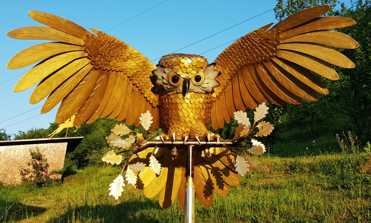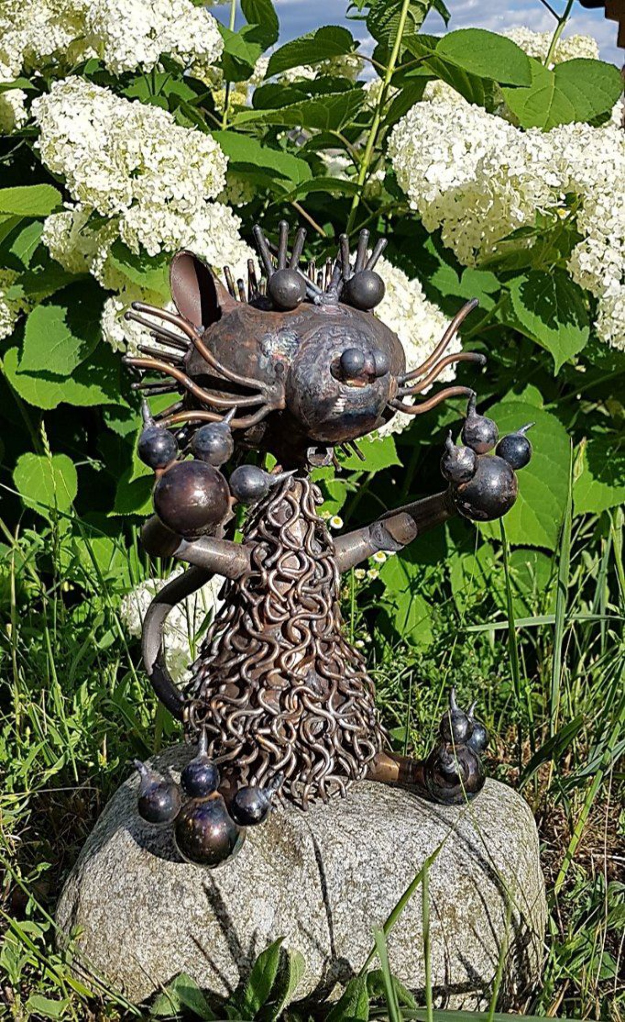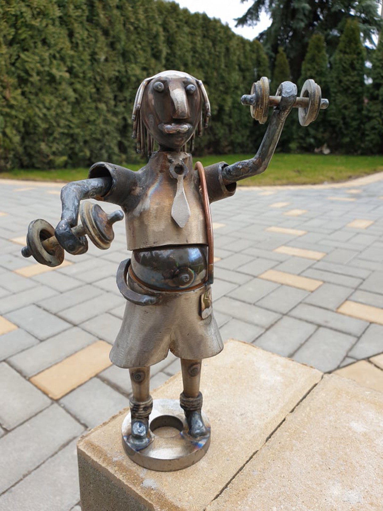Svarsčiau, kuo galėčiau papuošti aplinką. Kartą pravažiuojant pro vieną sodybą pamačiau pas žmogų medžio skulptūras. Jos sudomino mane ir aš pradėjau klausinėti, iš kur jos, kas jas sukūrė. Taip jau išėjo, kad sutarus kainą, viena jų – medinė pelėda – atsirado mūsų namuose. Kai pastačiau ją kieme, man kilo mintis, jog galėčiau pabandyti pagaminti kažką iš metalo. Juk ne vienus metus dirbau suvirintoju...