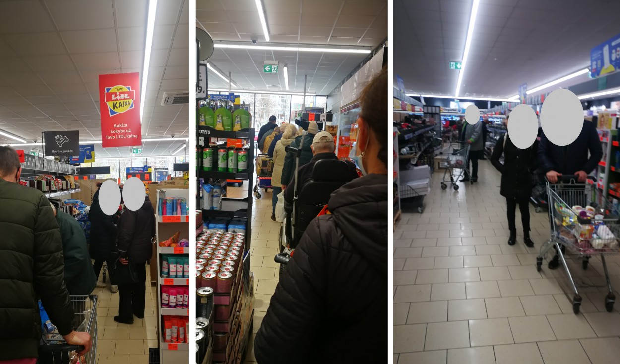 Anot nuotraukas atsiuntusios Aldonos, tarp prekių vaikščiojančios senjorės kalbėjo, kad vos sužinojusios, kad LIDL užveria duris neturintiems galimybių paso, net sublogavo. Viena jų teigė, kad tokia žinia ją net supykino, kita moteriškė jai antrino ir planavo, kaip gausiau apsipirkti paskutiniąją laisvą dieną.