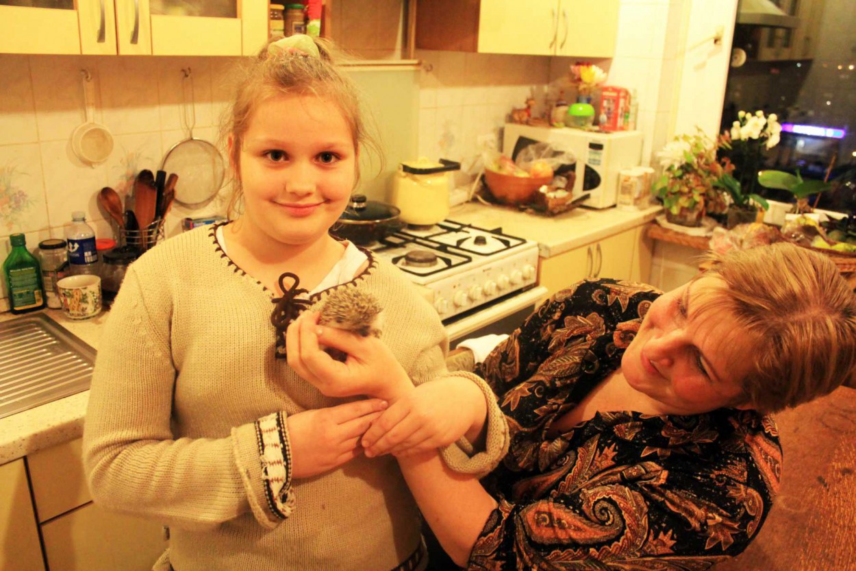 Ežio priežiūra, pasak E.Danilicienės, nėra sudėtinga. Jis gyvena erdviame narve, į kurį pripilta pjuvenų, geria vandenį, o valgo mažų kačiukų sausą maistą.