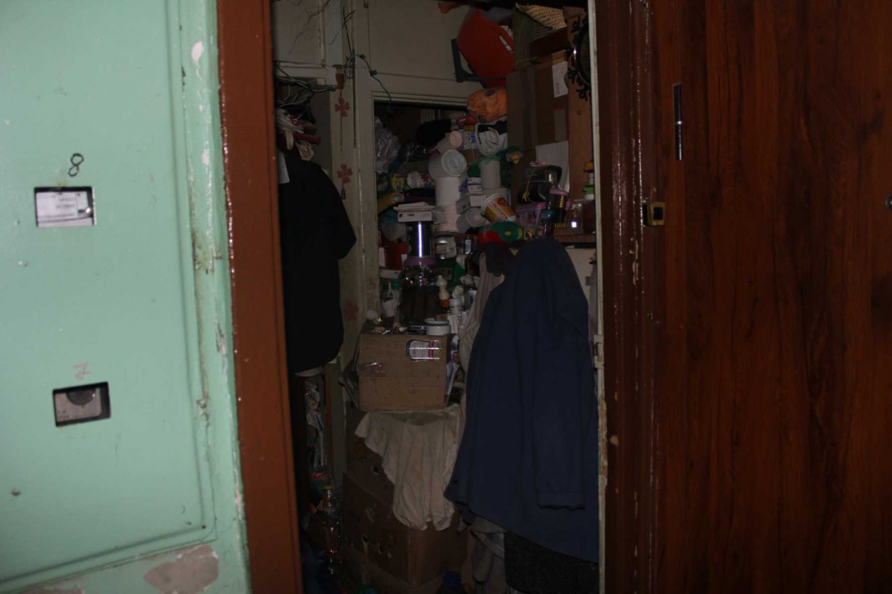Jei šiame bute įvyktų vandentiekio avarija ar kiltų gaisras, tarnybos į šį butą patekti negalėtų. Koridoriuje, kuriame šeimininkė ir miega, sunkiai apsisuktų net du žmonės. Įėjimo į kambarį iš viso nėra – jis užkrautas iki pat lubų.