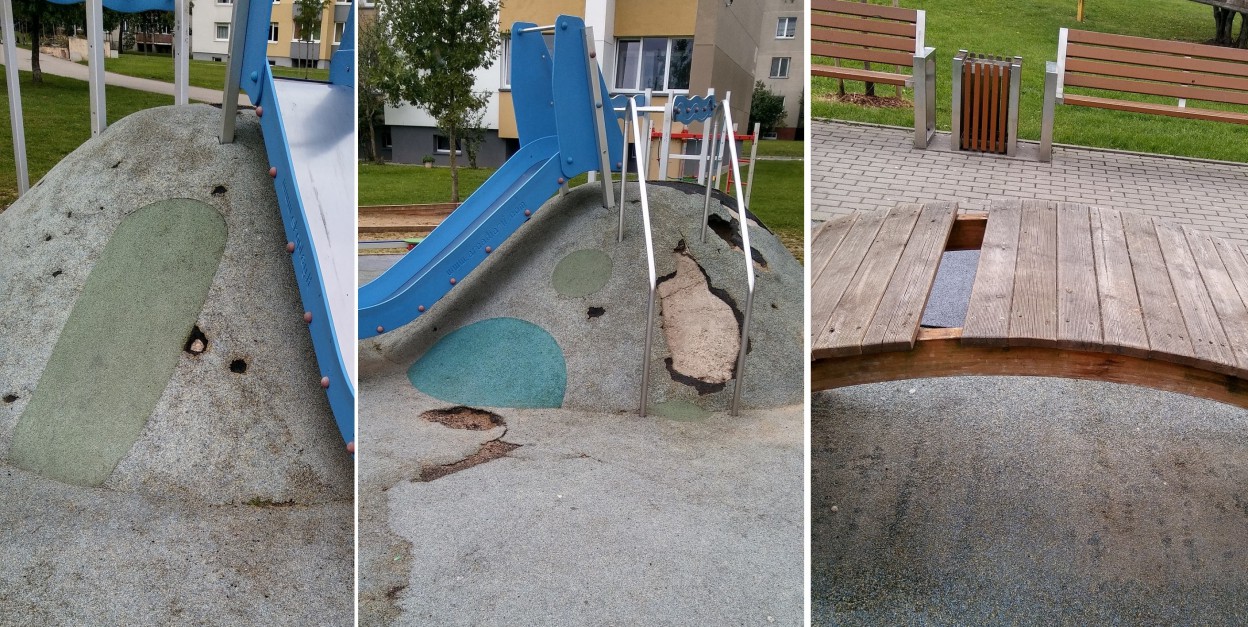 O aikštelę savivaldybė, manau, turėtų ir atsiradus gedimams patvarkyti. Tai tiek, tikiuosi tema bus verta dėmesio, nes nuotraukos kalba už save“, - rašo Lina ir atsiunčia kelias laišką papildančias nuotraukas.