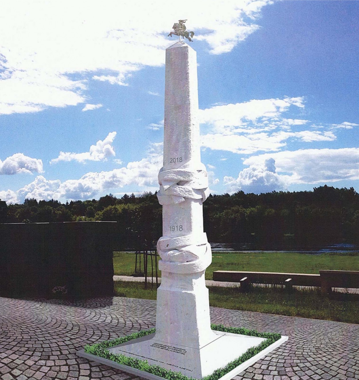 Keturbriaunę stelos viršūnę vainikuos herbas Vytis (stilizuotas raitelis ant žirgo). Monumentą numatoma pastatyti skvero aikštės centre.