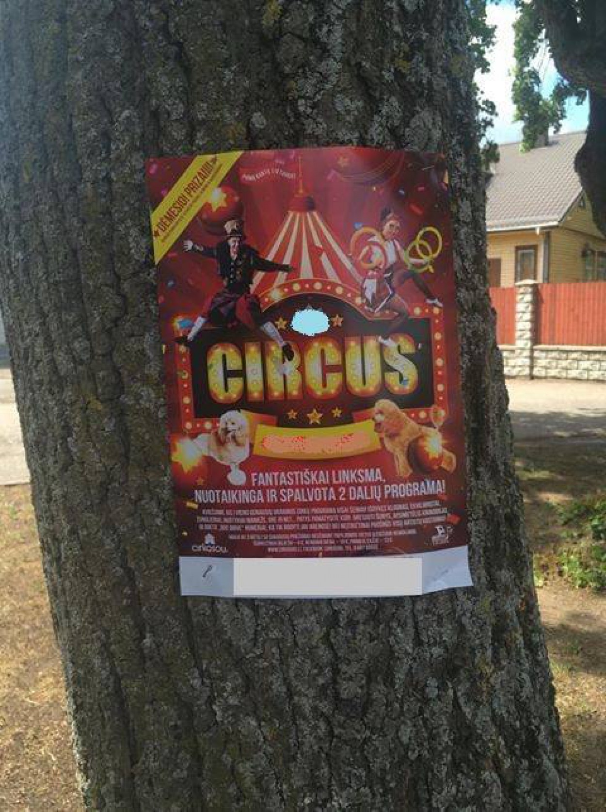 Į portalą jonavoszinios.lt kreipėsi jonavietis, kuris teigė pastebėjęs, kad dar praėjusios savaitės pabaigoje ant Birutės gatvėje augančių medžių buvo pritvirtintas ne vienas reklaminis cirko plakatas. Vaikinas klausė, ar tai nėra nusižengimas?