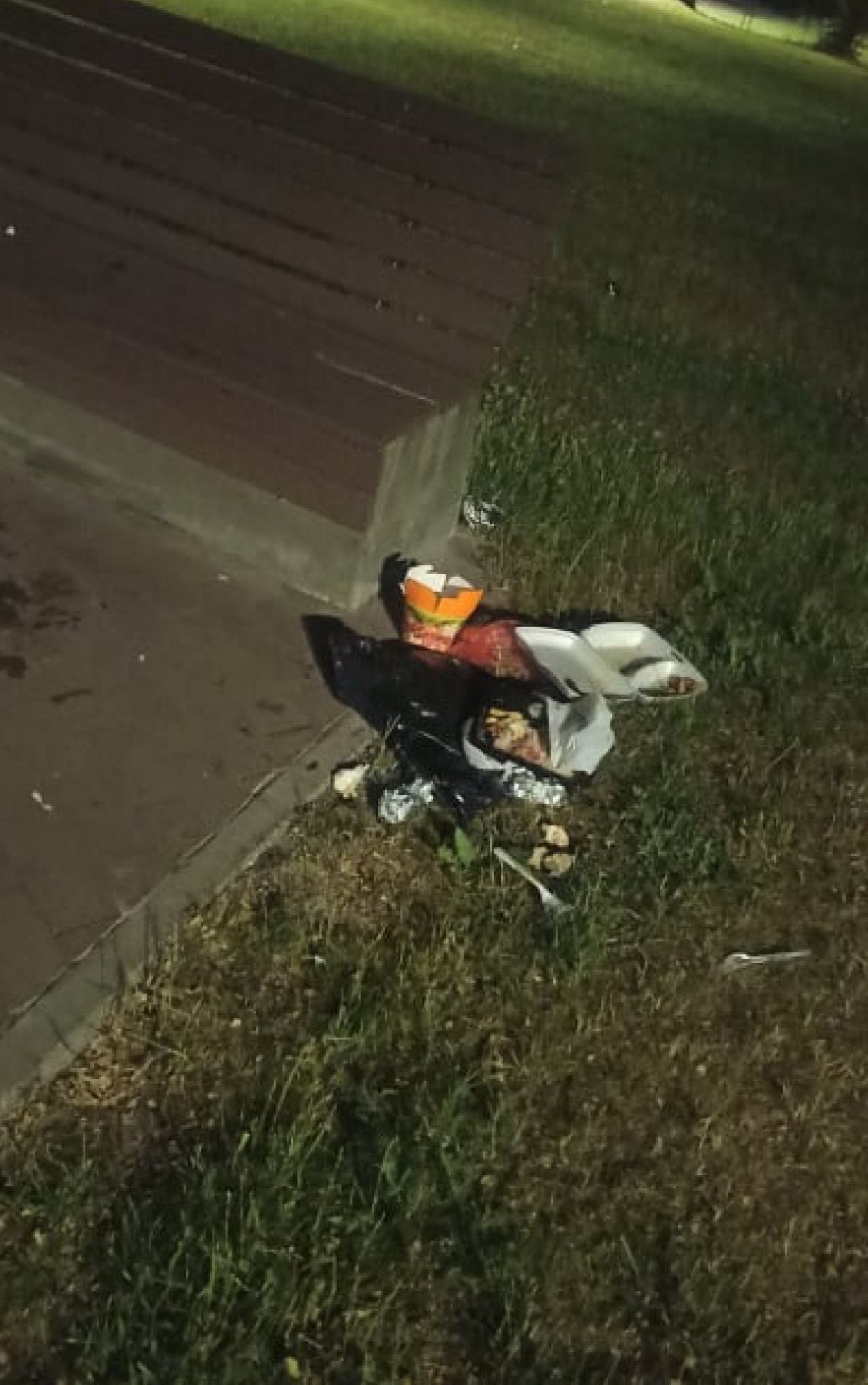 Atsiųstoje nuotraukoje, nors ir nakties metu, akivaizdžiai matosi nederamoje vietoje išmestos šiukšlės. Bet kyla klausimai – ar tikrai parke trūksta šiukšliadėžių, o gal tai paprasčiausias tingėjimas paėjėti toliau.