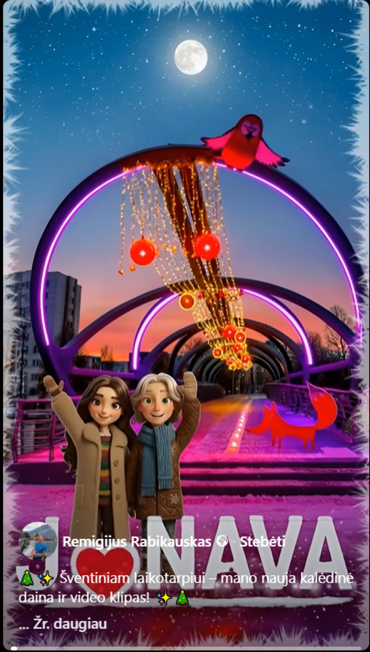 Jonavietis kūrėjas Remigijus Rabikauskas šventinį laikotarpį pasitiko pristatydamas naują kalėdinę dainą ir vaizdo klipą, skirtą tiek savo miestui, tiek visiems, laukiantiems šviesios ir jaukios žiemos nuotaikos. Socialiniuose tinkluose pasirodęs kūrinys vos per dvi dienas sulaukė beveik tūkstančio patiktukų ir šimtų pasidalinimų.