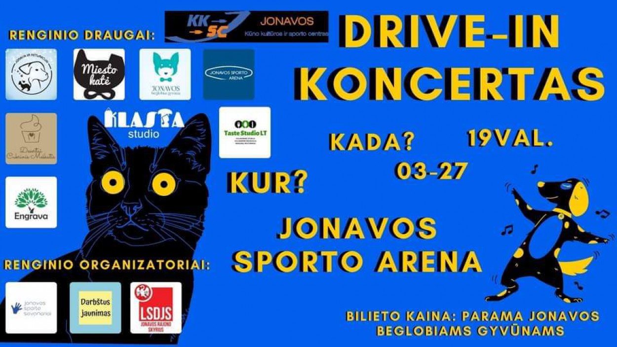Po ilgo laiko namuose Jonavos sporto savanoriai, Lietuvos socialdemokratinio jaunimo sąjungos Jonavos skyrius ir darbštus jaunimas Jonavos miesto gyventojus bei svečius kviečia jaukiai praleisti vakarą gyvo garso koncerte. Jau šeštadienį, kovo 27-ąją, 19 val. visi ,,Drive - In" koncerto klausytojai bus laukiami šalia Jonavos sporto arenos. Pastarajame muzikinius kūrinius atliks Darius Matonis bei Monika Pociūte, Elvija Zvicevičiūtė, grupė "Laidai" , Sadauskaitė Miglė, Kristina Chlastauskaitė ir Rugilė Stankevičiūtė.