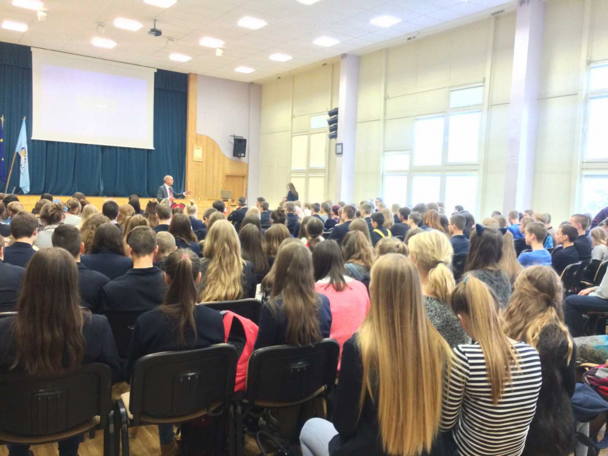 Sausakimšos gimnazijų salės tiek su moksleiviais, tiek ir su mokytojais, trečiojo universiteto nariais atskleidė mįslę, ko trūksta jonaviečiams. Mes norime ne tik gražiai atrodyti, kultūringai kalbėti, tačiau ir teisingai elgtis, tinkamai atstovauti sau, kaip asmeniui ar organizacijai. Etiketas, tokia plati tema, kad pasak pranešėjo būtų galima atskiras sesijas skirti kiekvienam klausimui.