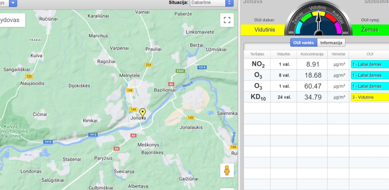 Aplinkos apsaugos agentūros (AAA) interneto svetainėje (ČIA) galite stebėti visų Lietuvoje esančių automatinių oro kokybės tyrimų stočių duomenis ir oro užterštumo lygį. Duomenys atnaujinami kas valandą. Jonavoje fiksuojamas vidutinis užterštumas Kietosiomis dalelėmis (KD10).