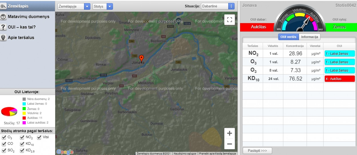 Vasario 23 d. duomenimis, kietųjų dalelių KD10 koncentracija Jonavoje viršijo leidžiamą 50 µg/m3 paros ribinę vertę ir šiuo metu yra 76,52 µg/m3.