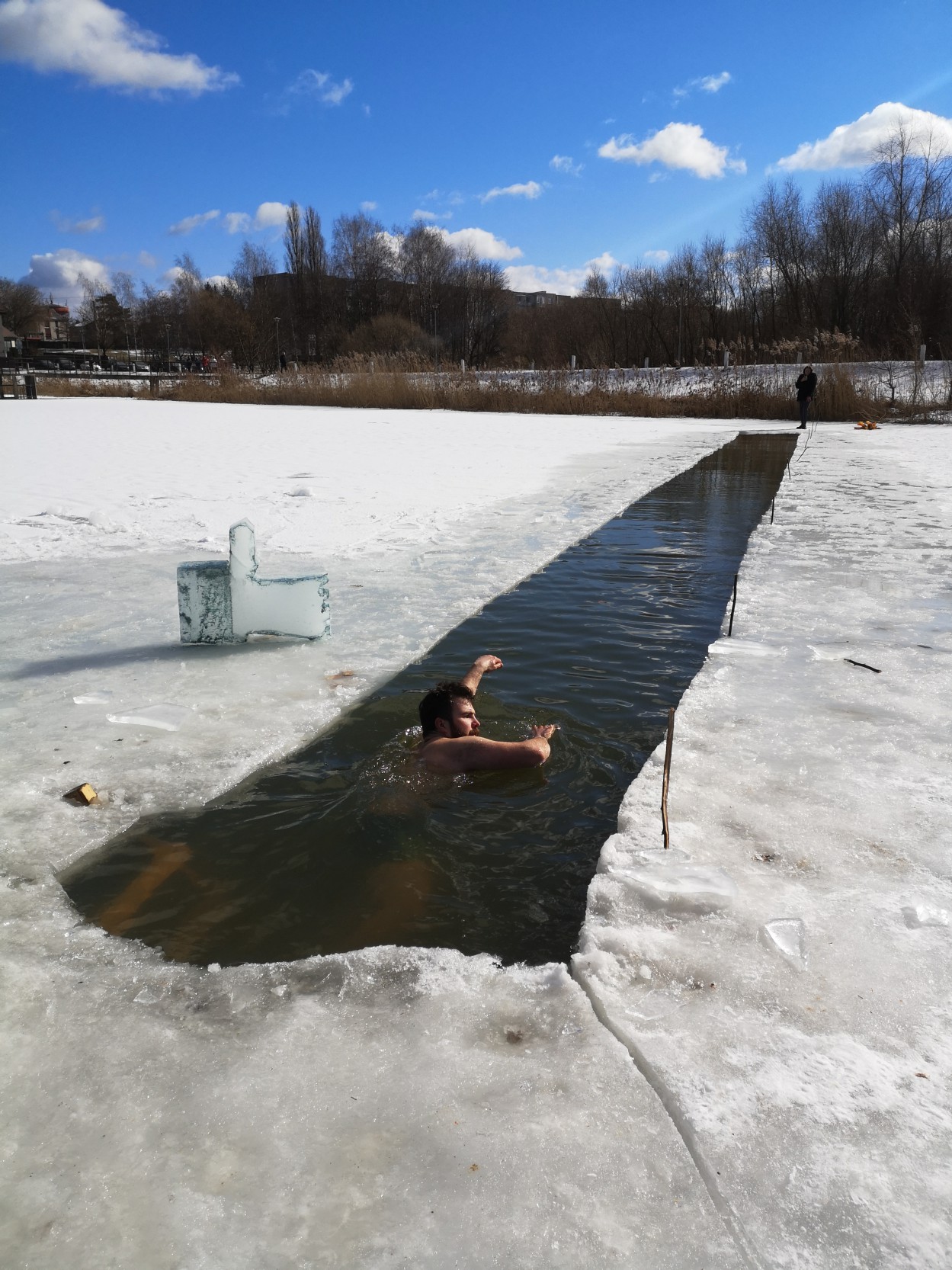 Iššūkis pavyko, o su juo dingo ir baimė šalčiui. Dėl to nusprendžiau, kad plaukimas šaltame vandenyje įneštų teigiamą, naują patirtį. Na, o esant bendraminčiams, kurie dar ir išpjovė 25 metrų eketę, nusprendęs neplaukti būčiau iššvaistęs progą pasisemti naujos patirties", - kalbėjo E. Panceras, pridurdamas, kad maudynės eketėje jam buvo didelis žiemos džiaugsmas, leidęs išlįsti iš ,,urvo" karantino metu.