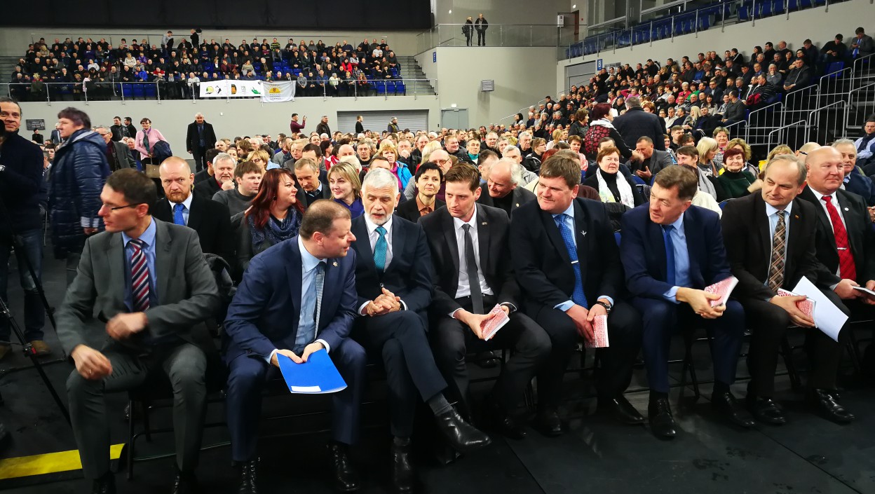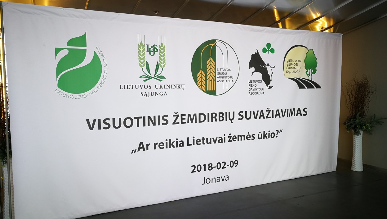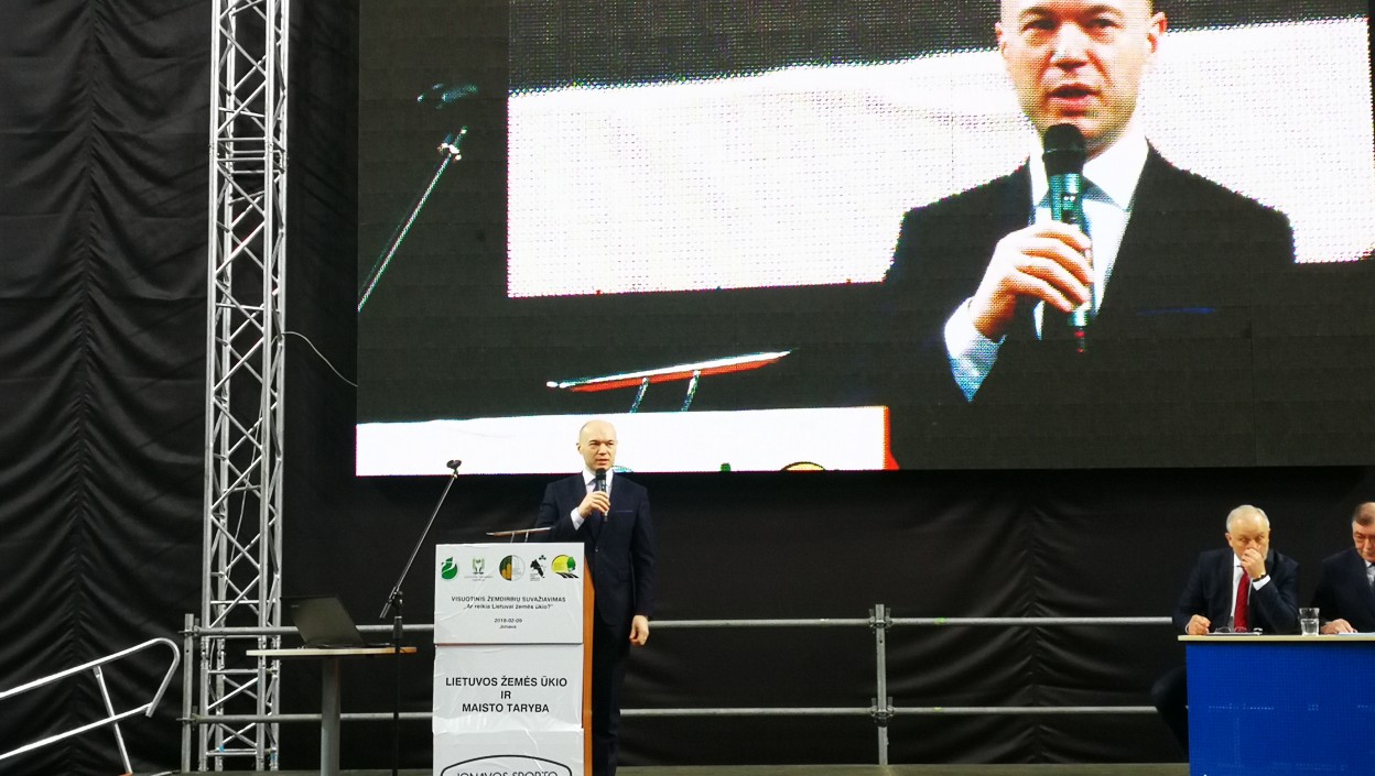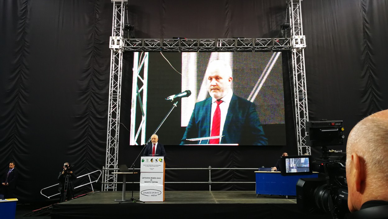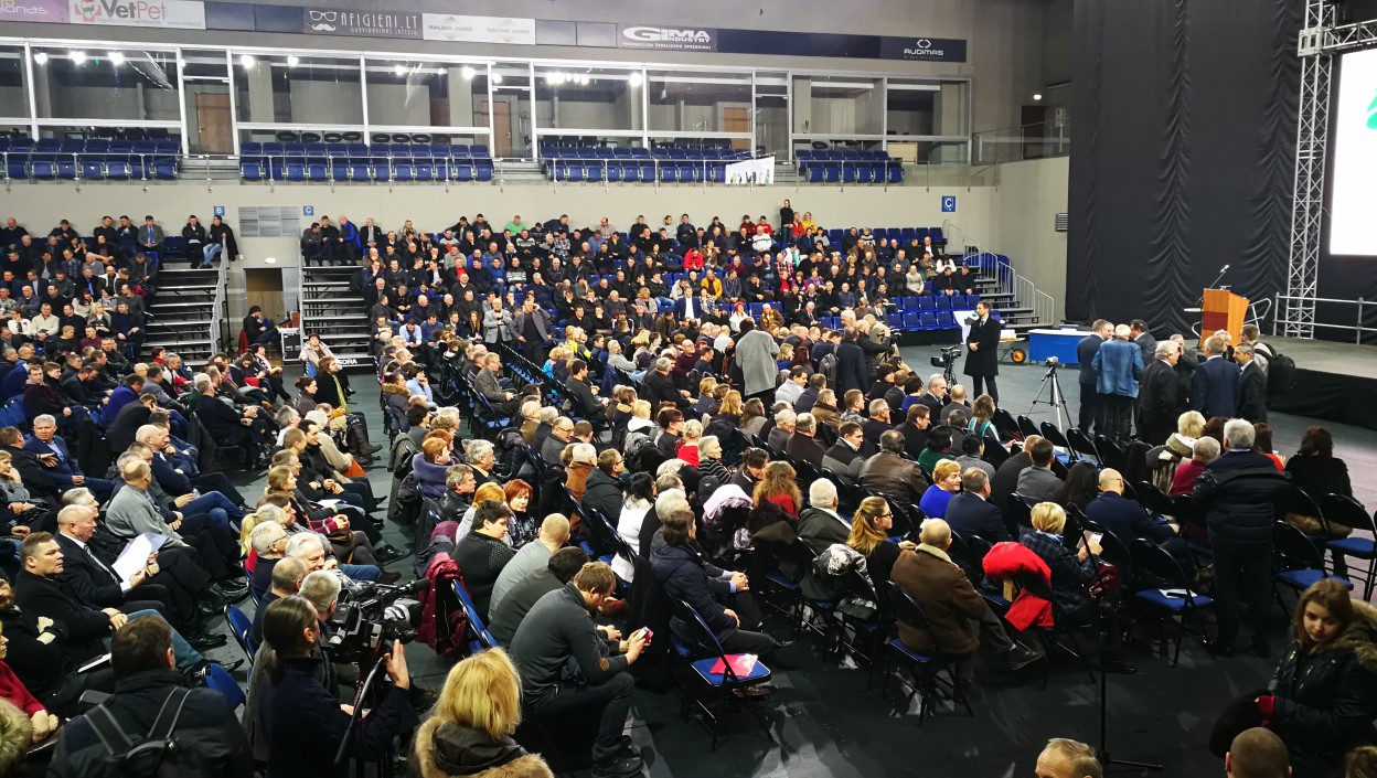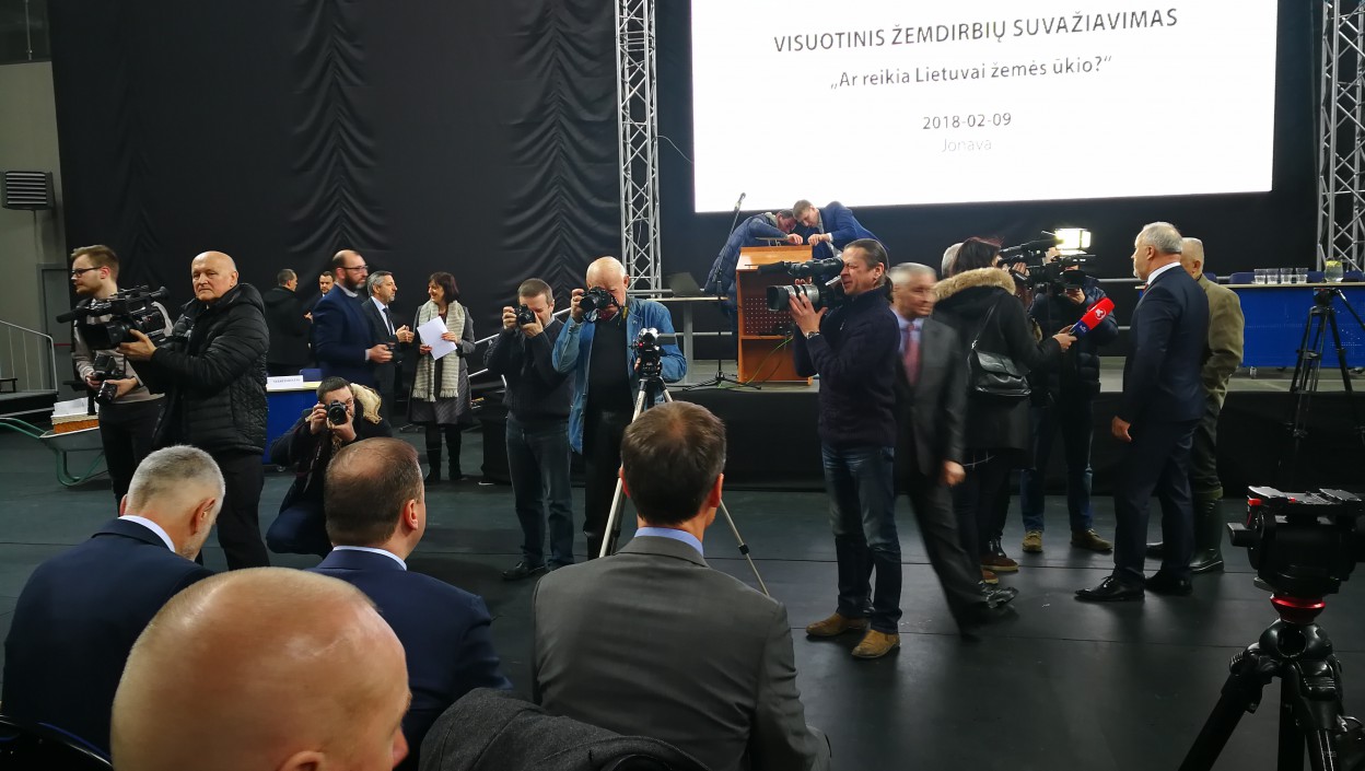 Šiandien Jonavos sporto arenoje buvo užimtos visos vietos, taip pat, perpildyta ir automobilių stovėjimo aikštelė - čia vyko visuotinis žemdirbių suvažiavimas „Ar reikia Lietuvai žemės ūkio?“