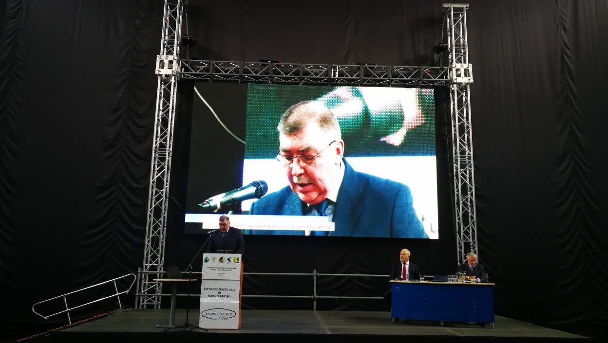 “Tokio mąsto suvažiavimas, kaip šiandien, vyko tik 2013 metais Kaune. Per tą laiką daugelis mūsų yra nusivylę ir susipriešinę, tačiau manau, kad problemos gali būti išsprendžiamos kartu su politine valia. Nors mus vadina išlaikytinių luomu, nuolat prašančių lengvatų, bet mes turim teisę dirbti taip, kaip dirba visi kiti ES ūkininkai, bet mes niekaip nesulaukiame ūkininkavimo sąlygų suvienodinimo. Taip pat mes norime, kad tiesioginės išmokos nuo 2021 metų būtų mokamos ne mažesnės, kaip 2020 metų ES ūkininkams mokamos išmokos. Beje, atvirame Maldeikienės laiške ūkininkams teigiama, kad toks žemės ūkis kaip dabar, Lietuvai nereikalingas, gaila, kad ji šiandien nedalyvauja su mumis. Labai norėjosi pažiūrėti jai į akis. Į jos pasiūlymus, skaityti knygas, galiu pasakyti, kad ūkininkas, dirbdamas savo darbą, turi išmanyti kone 20, ar daugiau profesijų, taip kad mes, esame tikrai apsiskaitę”,- kalbėjo Lietuvos ūkininkų sąjungos pirmininkas Jonas Talmantas.