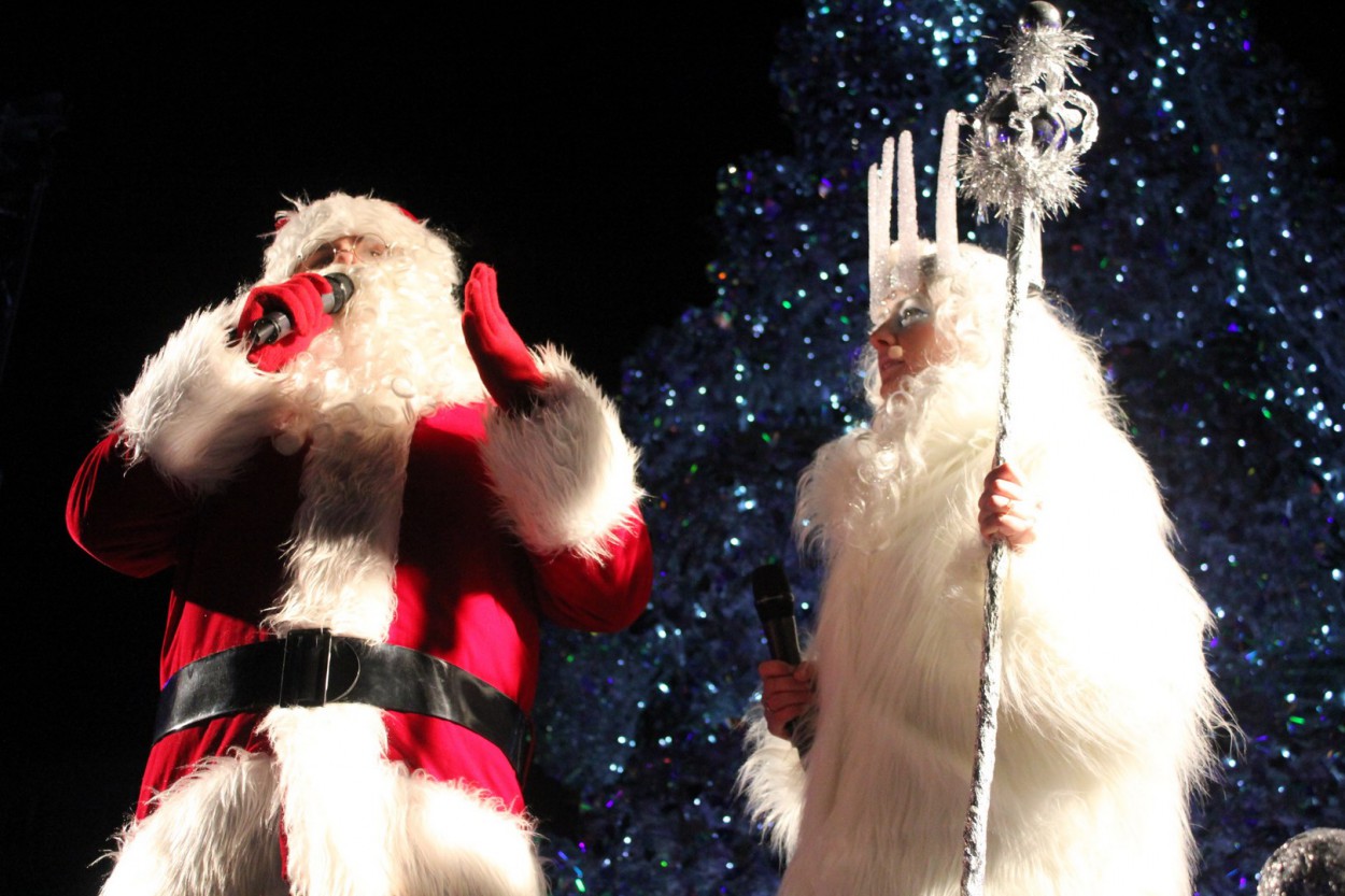 Gausiai į šventinį renginį miesto centre susirinkusius jonaviečius pasveikino į Jonavą atvykęs Kalėdų senis, elegantiška ir šalta Žiema bei nykštukai, geros nuotaikos linkėjo bei linksmino įvairūs Jonavos meno kolektyvai – kultūros centro choras „Šuldu buldu“, Vaikų ir jaunimo visapusiško lavinimo centro mamos kartu su kūdikiais, choras "Kir vir bam", šokių klubas „Bonus“, taip pat svečiai – merginų grupė HIT.
