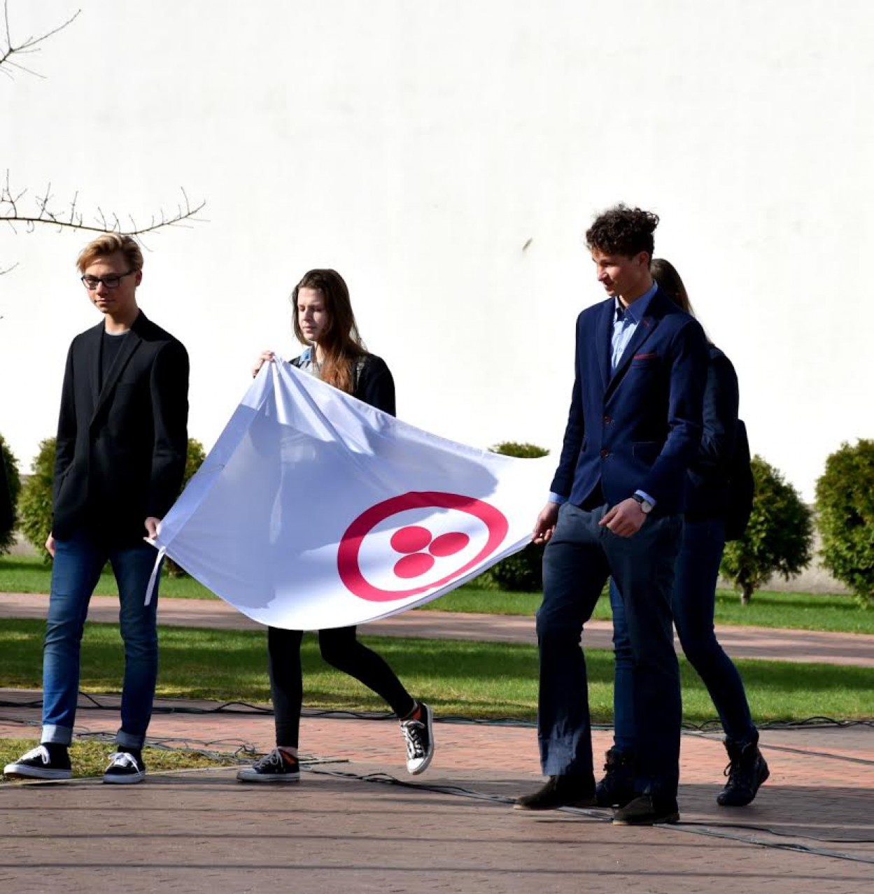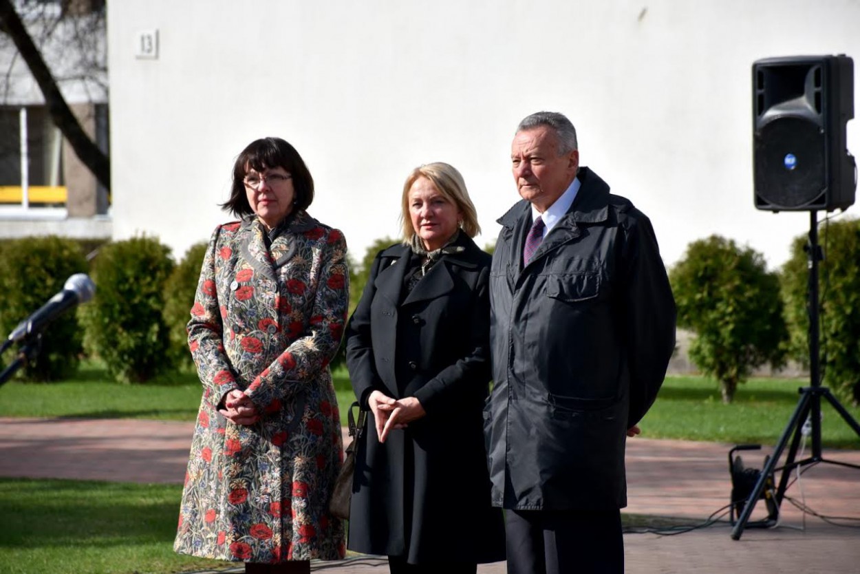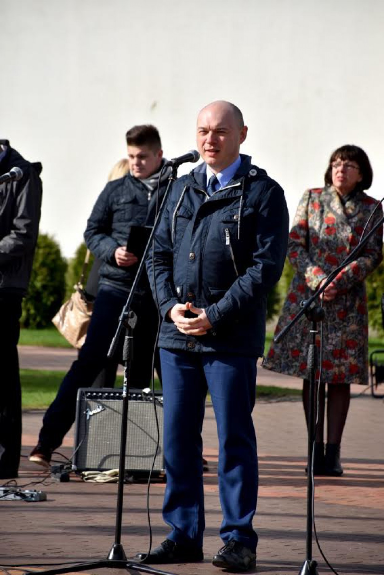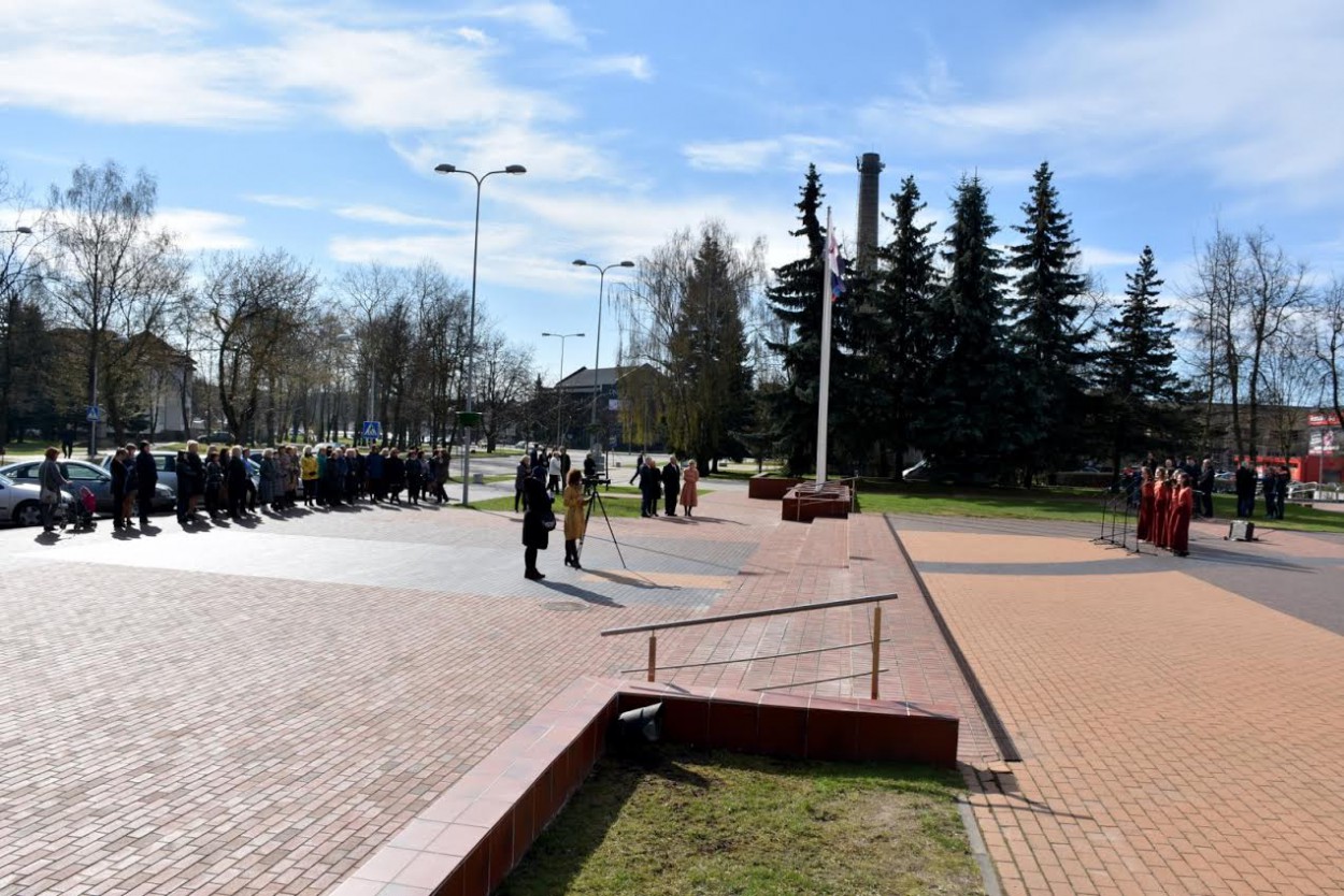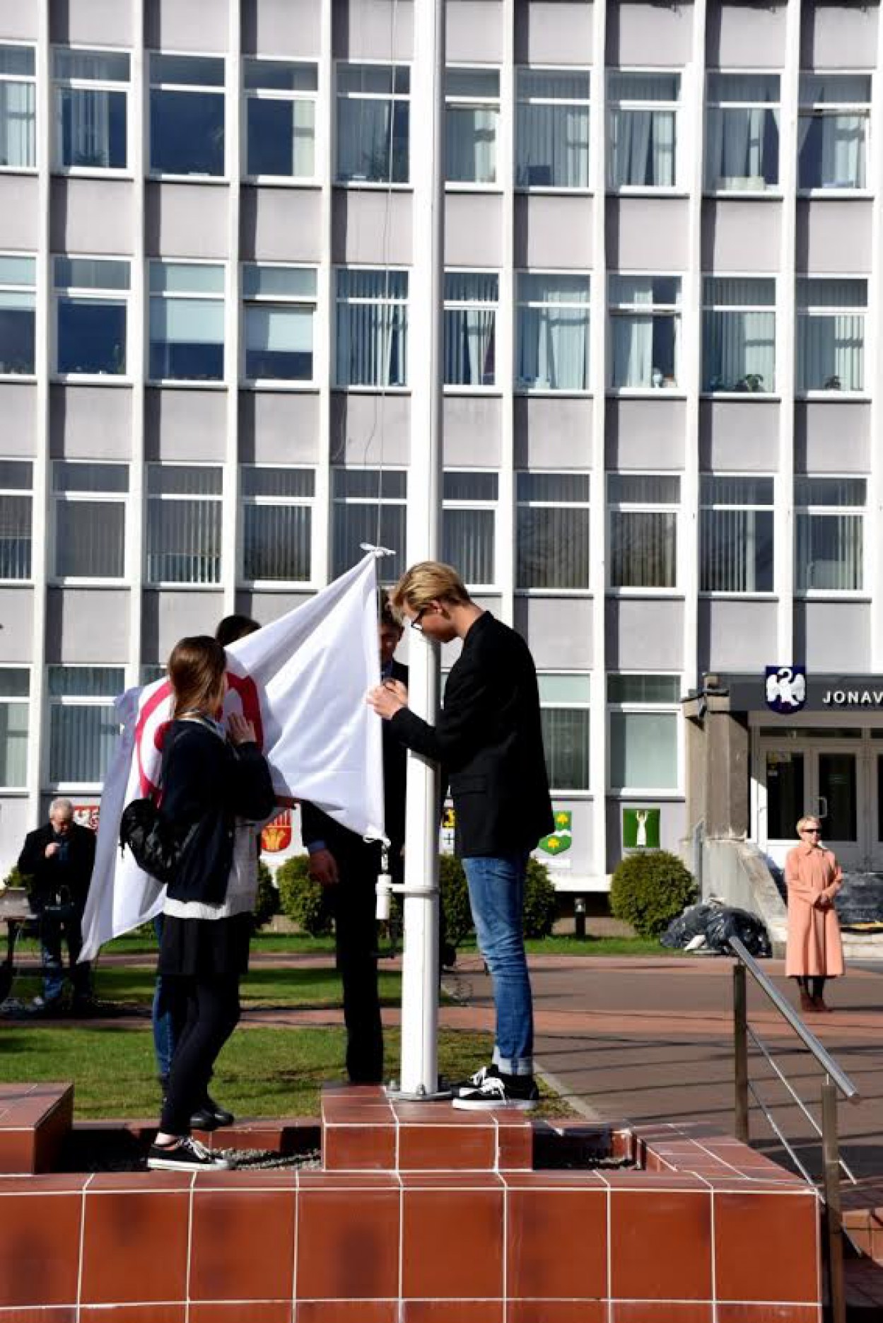 Tuo tarpu iš ryto Santarvės aikštėje susirinkusius jonaviečius pasveikino rajono vicemeras Eugenijus Sabutis, o Taikos vėliavą iškėlė J.Ralio gimnazijos gimnazistai.