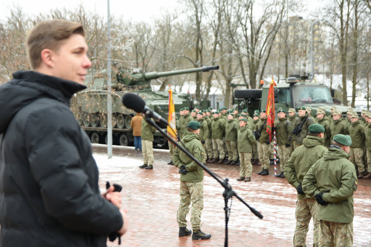 Santarvės aikštėje į karius kreipėsi LDK Algirdo mechanizuotojo pėstininkų bataliono vadas pulkininkas leitenantas Darius Žūkas, rikiuotę pasveikino Jonavos rajono meras Mindaugas Sinkevičius.