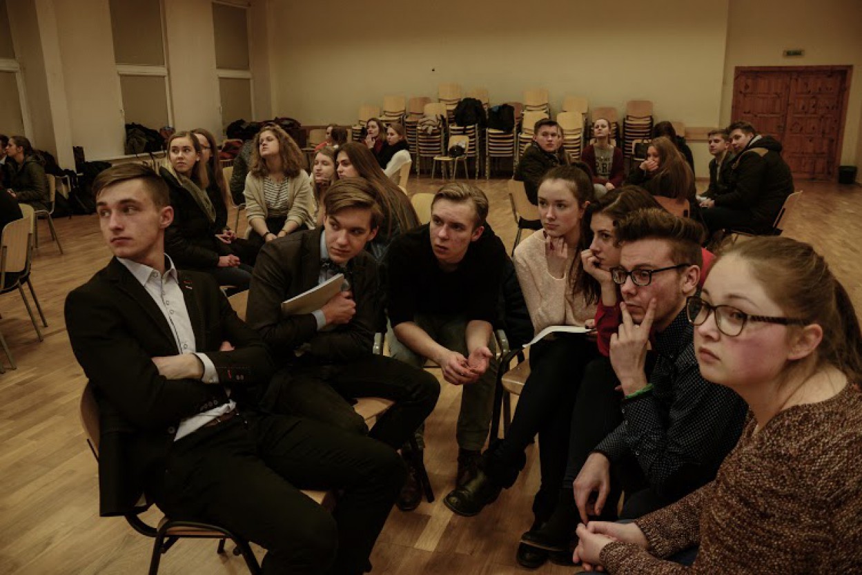 Išbandyti savęs europarlamentaro vaidmenyje į Senamiesčio gimnaziją atvyko 50 vyresniųjų klasių moksleivių iš Vilniaus, Kauno, Šiaulių ir kitų Lietuvos miestų.