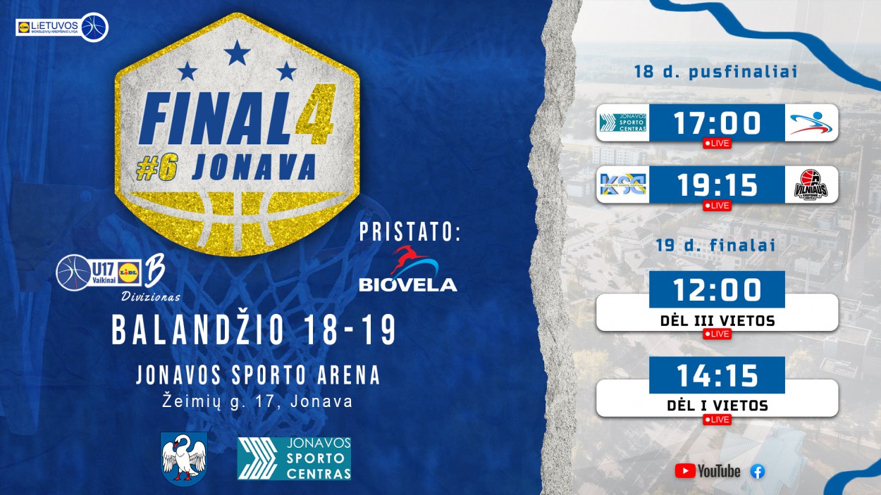 Jonavos sporto arenoje balandžio 18-19 dienomis vyks tikra krepšinio šventė – čia vyks Moksleivių krepšinio lygos (MKL) U17 finalinio ketverto varžybos. Tarp 4 pajėgiausių B diviziono vaikinų komandų pateko Jonavos sporto centras, Panevėžio sporto centras, Kėdainių sporto centras ir Vilniaus krepšinio mokykla.