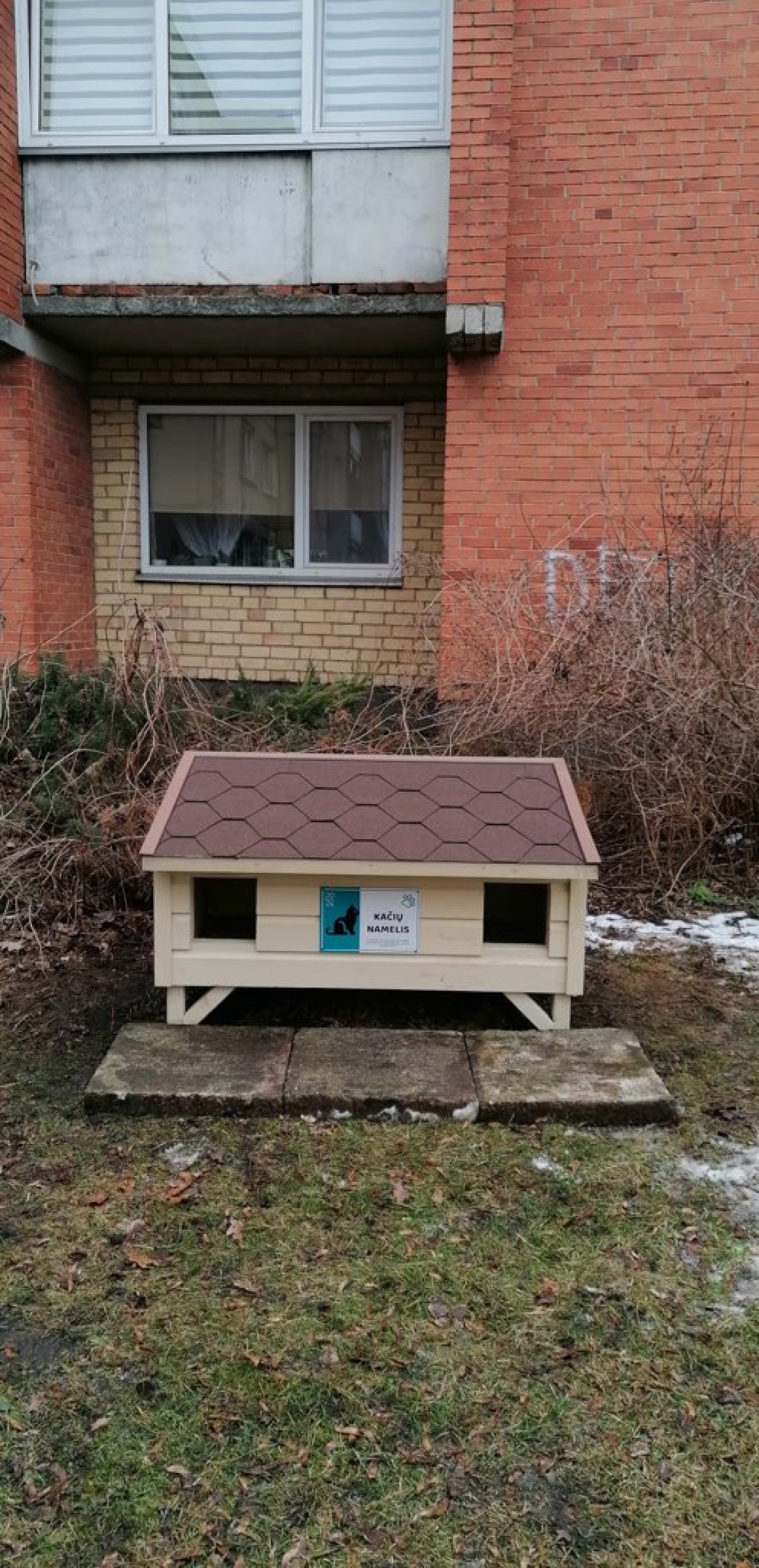 „Lėšų surinkta buvo 1230.40 Eur. Namukų kaina 290 Eur. Įpirkome 4 namukus. Mokėjimai atlikti per du kartus: 290 Eur sumai 2023.01.14 ir 870 Eur 2023.02.03. Likutis sąskaitoje 70.40 Eur. Likutis bus panaudotas maisto benamėms katėms įsigijimui. Toliau lėšos namukams nėra renkamos.