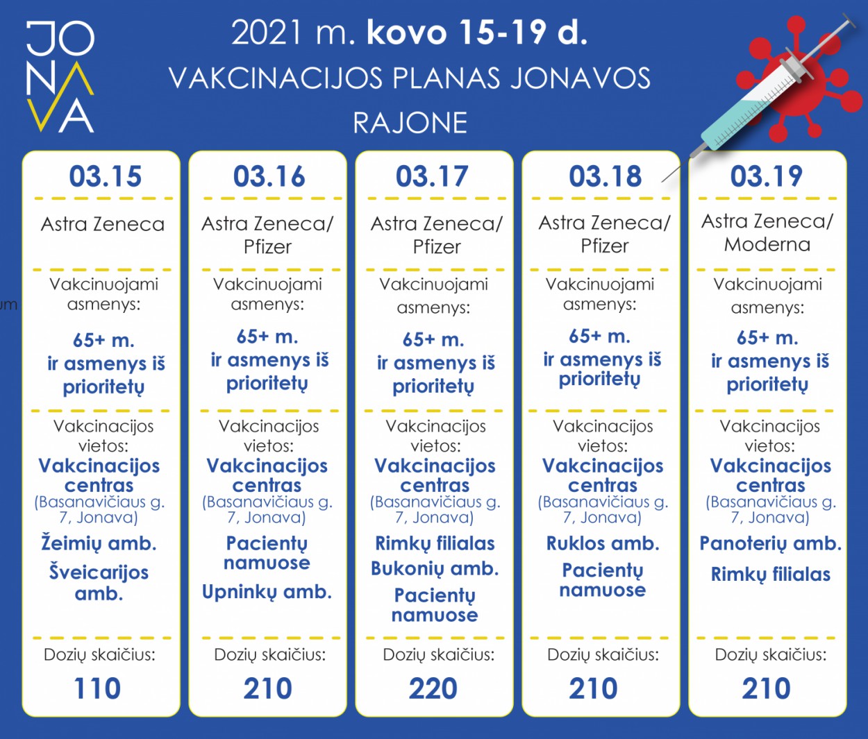 Atokiau Jonavos miesto gyvenantys pacientai ir toliau skiepijami PSPC seniūnijų ambulatorijose.