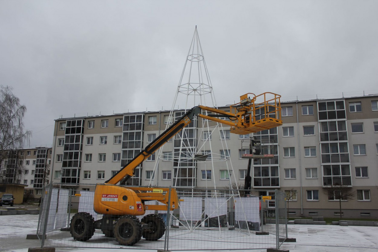 Metalinis karkasas – 12 metrų aukščio, dar maždaug vieną metrą „užims“ eglės viršūnė.