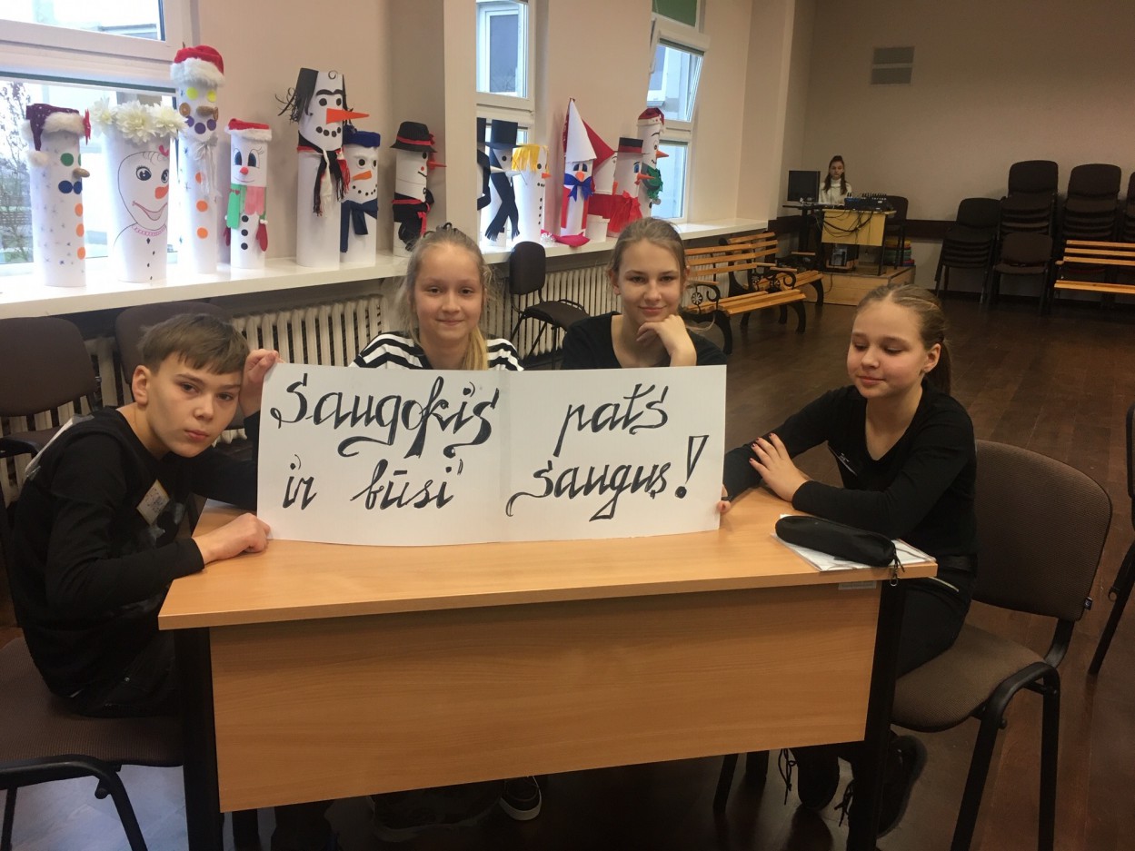 Gruodžio 10, 12 dienomis vyko vienas iš konkursinių renginių – saugaus eismo viktorina 5-8 klasių mokiniams „Saugokime gyvybes keliuose“. Atkakliai rungėsi net 20 komandų. Mokiniai atsakinėjo į klausimus apie saugų pėsčiųjų ir dviratininkų elgesį kelyje, prisiminė jiems skirtas saugumo priemones, atliko praktines užduotis.