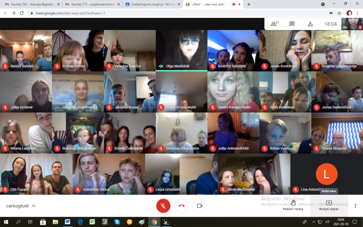 sveikatingumo varžybos “Aš ir mano šeima”. Šioje, jau tradicija tapusioje šventėje, dalyvavo net 18 pačių aktyviausių progimnazijos šeimų. Tiesa, šį kartą renginys išsiskyrė tuo, kad vyko nuotoliniu būdu, tačiau tai tikrai nesumenkino dalyvių patiriamų emocijų kiekio, bendravimo džiaugsmo bei puikios nuotaikos.