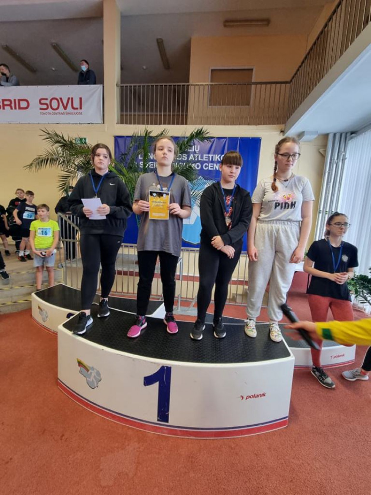 Aukščiausią vietą - trečiąją, užėmė rutulio stūmikė Gabija Daugirdaitė. Organizatorių ir rėmėjų dėka, taip pat vaikų džiaugsmui ir paskatinimui, šiose varžybose nugalėtojų pakyla buvo praplėsta iki šešių prizinių vietų. Tad ant apdovanojimų pakylos atsidūrė ketvirtąsias vietas iškovojusios Gabija Genulevičiūtė (600m) ir Orinta Stanevičiūtė (1000m), bei šeštos finišavusios Ieva Kliokmanaitė (600m) ir Radvilė Eimutytė (200m). Norime paminėti ir Vakarę Pšitulskytę – ši sportininkė buvo jauniausia 200 m bėgimo rungtyje ir nors ir neužemė prizinės vietos, bet pagerino savo asmeninį rezultatą (36,68 s).