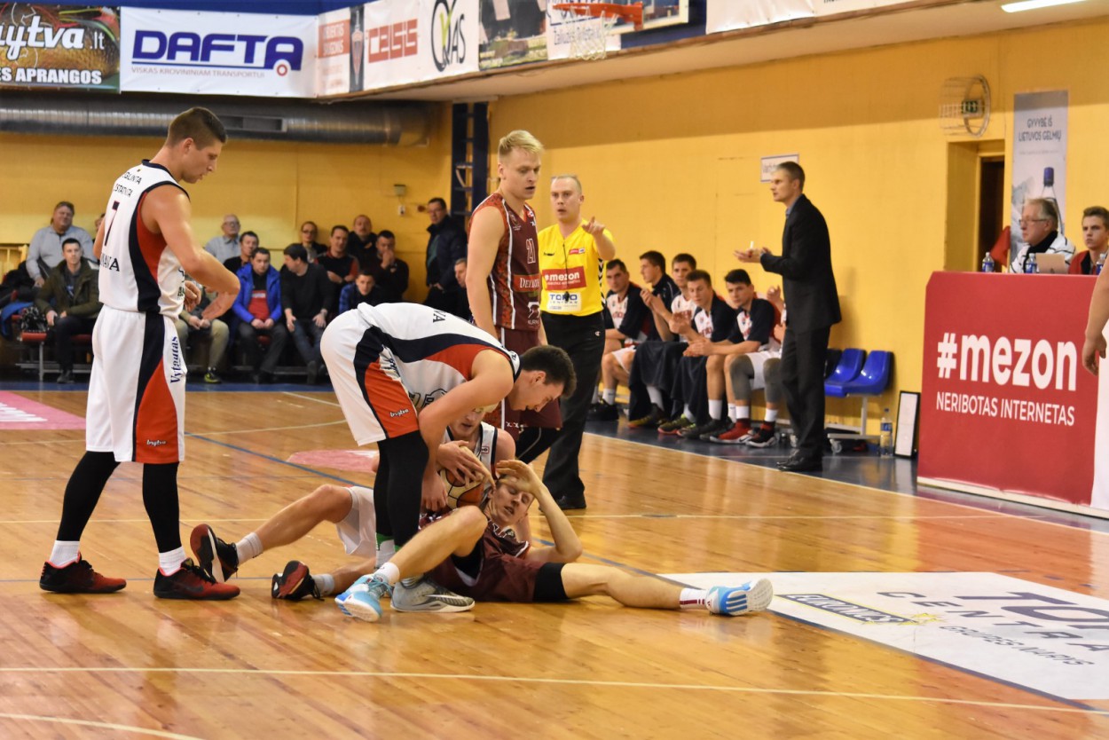 Savaitgalį Nacionalinės krepšinio lygos čempionate ne tik baigėsi pirmasis ratas, bet iš karto prasidėjo ir antrasis. Per dvi dienas tos pačios ekipos tarpusavyje žaidė dukart – namuose ir išvykose. Sporto klubo krepšininkai pirmąsias rungtynes su Joniškio „Delikatesas“ klubu žaidė savų žiūrovų akivaizdoje. Mačo pradžia N. Zabarausko vadovaujamiems krepšininkams nebuvo palanki, nes ketvirtąją minutę jau teko vytis varžovus (2:11). Po trenerio paprašytos minutinės pertraukėlės situacija drastiškai nesikeitė. Tik paskutinėmis ketvirčio sekundėmis, svečiams pirmaujant dviženkle persvara (12:22), iš toli pataikė Lukas Grabauskas, leisdamas šiek tiek sušvelninti atsilikimą (15:22).