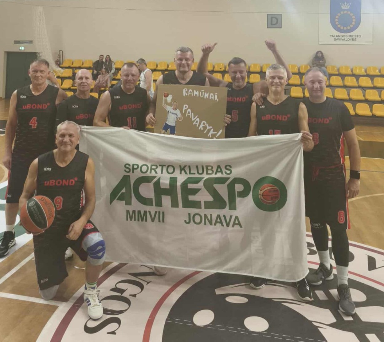 Mūsų SK „Achespo“ krepšininkai, žaidę 55+ grupėje, patyrė vos vieną pralaimėjimą, bet tai nesutrukdė jiems užkopti į patį viršų ir iškovoti 1-ąją vietą.