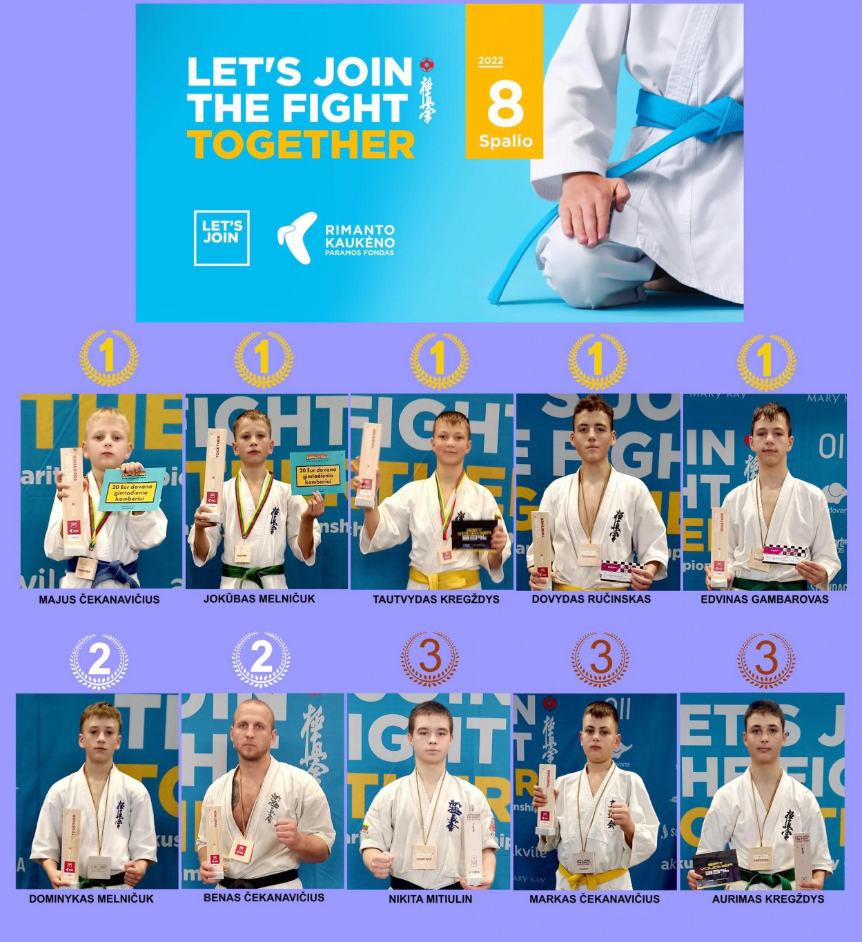 Vakar, spalio 8-ąją, Garliavos sporto arenoje vyko kartu su Rimanto Kaukėno paramos fondu organizuojamos varžybos "Let's join the fight together".
