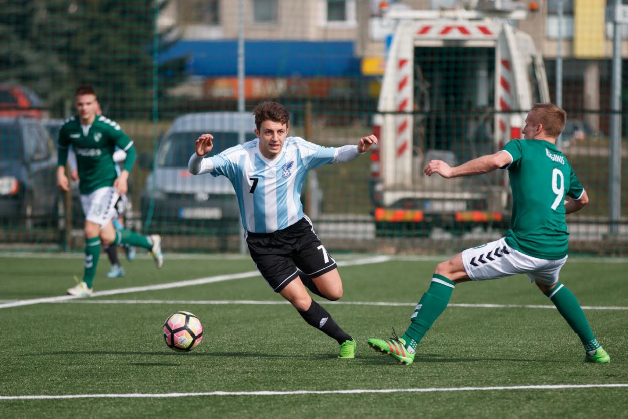 Pirmajame klubų susitikime Jonavoje gražią pergalę 5:2 (2:0) šventė šeimininkai, kurių gretose du kartus pasižymėjo Maksimas Marsusičius, po kartą Tadas Eliošius, T. Salamanavičius ir Klaudijus Upstas. Rezultatą sušvelnino du Roko Krušnauko įvarčiai antrajame kėlinyje.