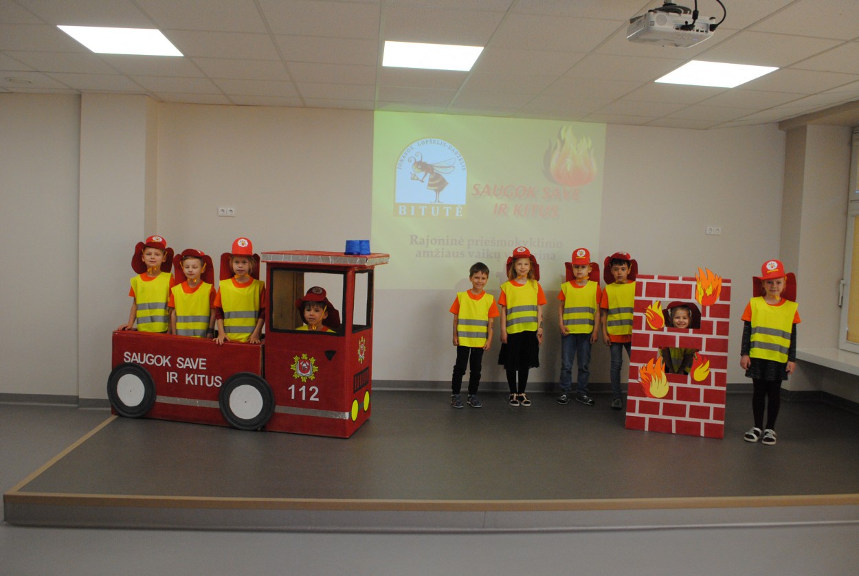 Jonavos vaikų lopšelis-darželis „Bitutė“ vykdo projektą, skirtą vaikų saugaus elgesio įgūdžių formavimui. Praeitais mokslo metais pagrindinis dėmesys buvo skirtas saugiam elgesiui gatvėje. Šiemet, tęsdami projekto veiklą, pakvietėme Jonavos rajono priešmokyklinio amžiaus vaikų komandas pagilinti žinias apie saugų elgesį su ugnimi.