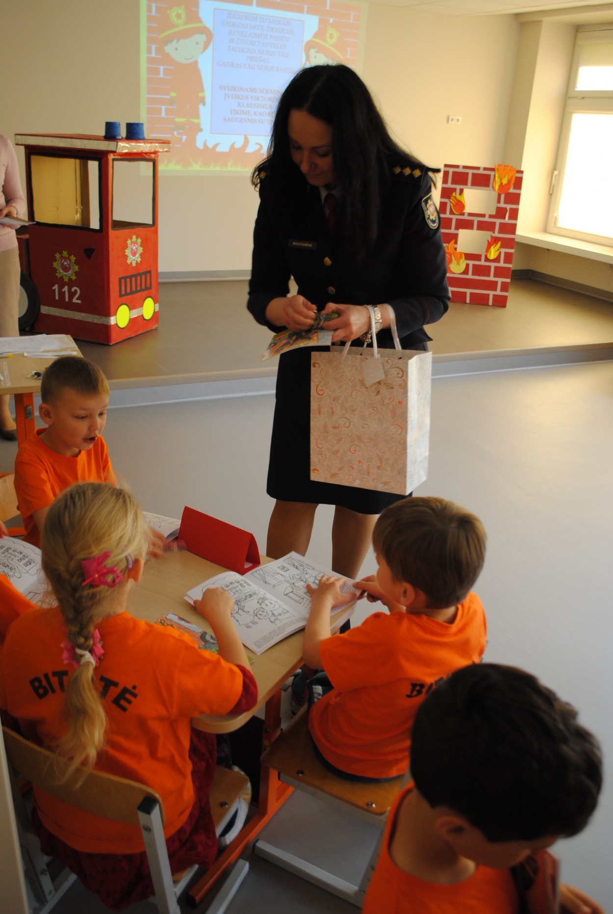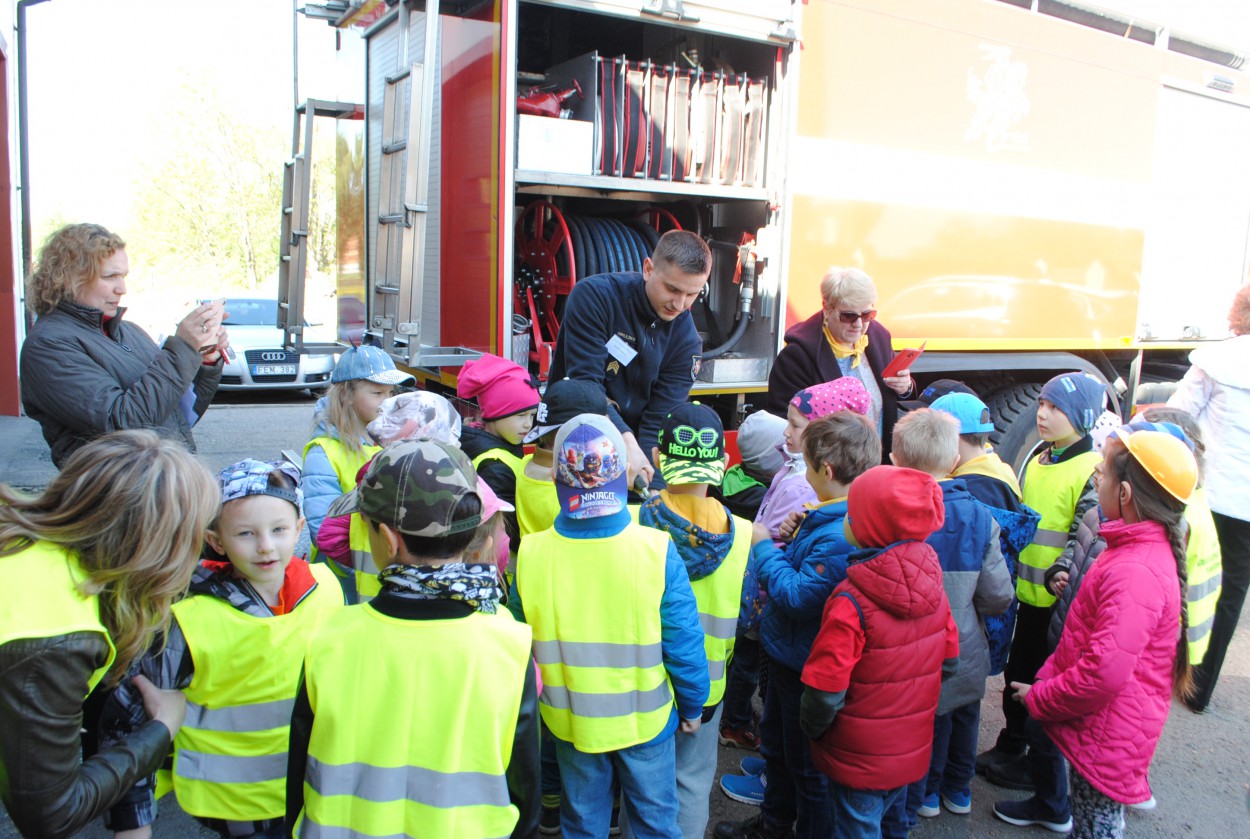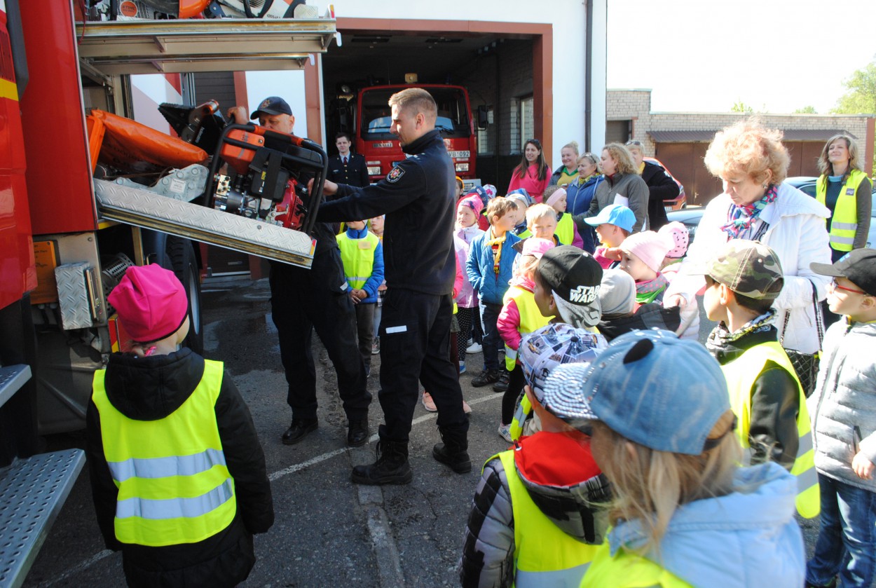 Ugniagesiai gelbėtojai su dideliu entuziazmu pademonstravo vaikams gelbėjimo techniką ir darbo įrankius. Viktorinos dalyviai atsakingai kelionės lapuose žymėjosi tai, ką įdomaus sužinojo, nes numanė, kad šių žinių prireiks, atsakant į viktorinos klausimus.