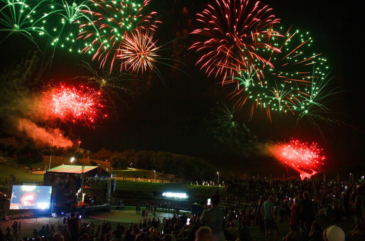 19 valandą šventinis koncertas su grupe MANGO, A. Chošnau, Jessica Shy, DJ Bardachioku ir fejerverkais.