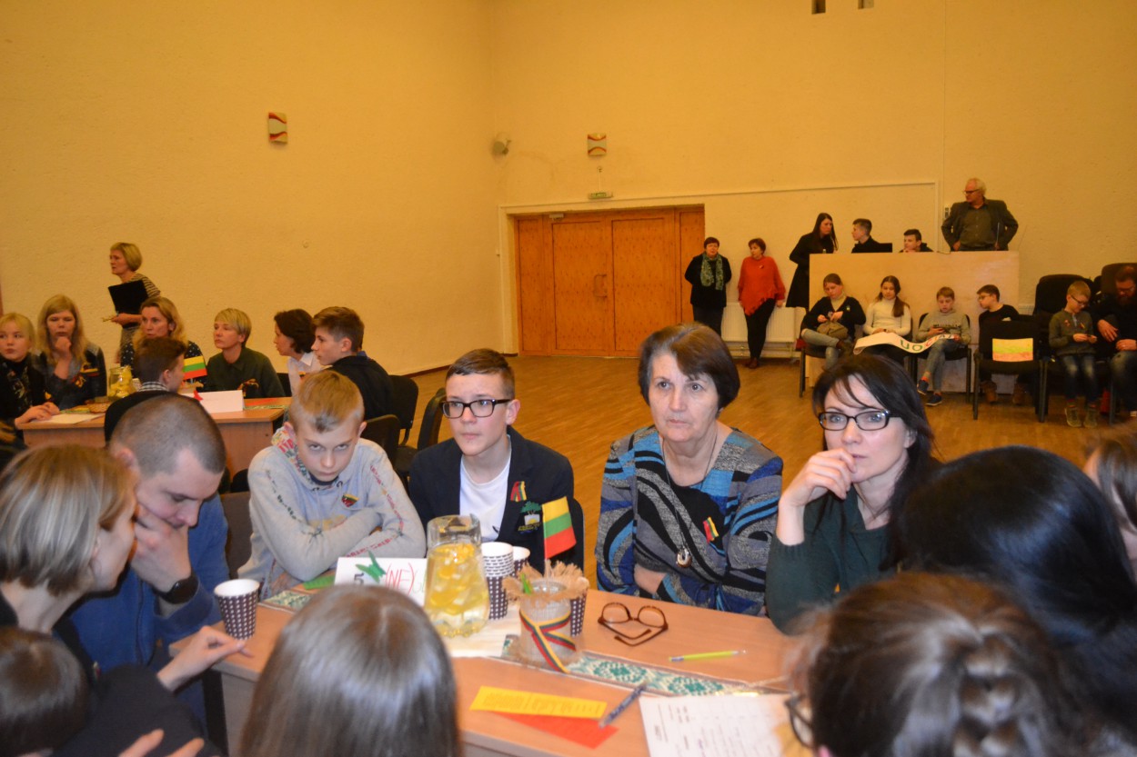 Vedėjas padėkojo už suteiktą galimybę pabendrauti, pasidžiaugti jaunąja karta – tikrais patriotais. Protų mūšyje dalyvavo 6 komandos: „Lietuvos rugiai“, „Auksinis protas“ „Smegenuočiai“, „Neries vingis“, „(Ne) genijai“, „Draugeliai“. Komandų šūkiai, plakatai, tautinė atributika sužavėjo komisijos narius. Komisijai vadovavo Mokyklos tarybos narė A.Malanova, jai talkininkavo istorijos mokytojai G.Kurganovas, G.Bazilevičienė ir gimnazistės, buvusios „Neries“ pagrindinės mokyklos mokinės. Renginio metu ne kartą buvo pasidžiaugta draugiškais santykiais su Senamiesčio gimnazijos bendruomene, beje, ir protmūšį vedė aktyvios, pilietiškos gimnazistės Liepa ir Gabija.
