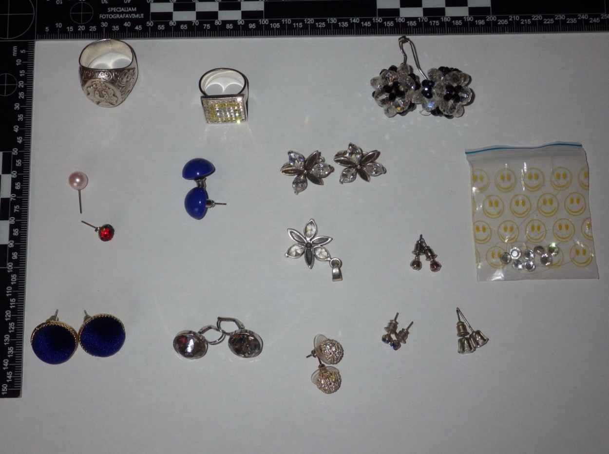 Atlikus kratas šių asmenų gyvenamosiose vietose, rasti juvelyriniai dirbiniai, bižuterija, laikrodžiai, įvairūs buities įrankiai, kvepalai, dokumentai, kiti daiktai, kurie, kaip įtariama, pavogti iš butų Jonavos mieste.