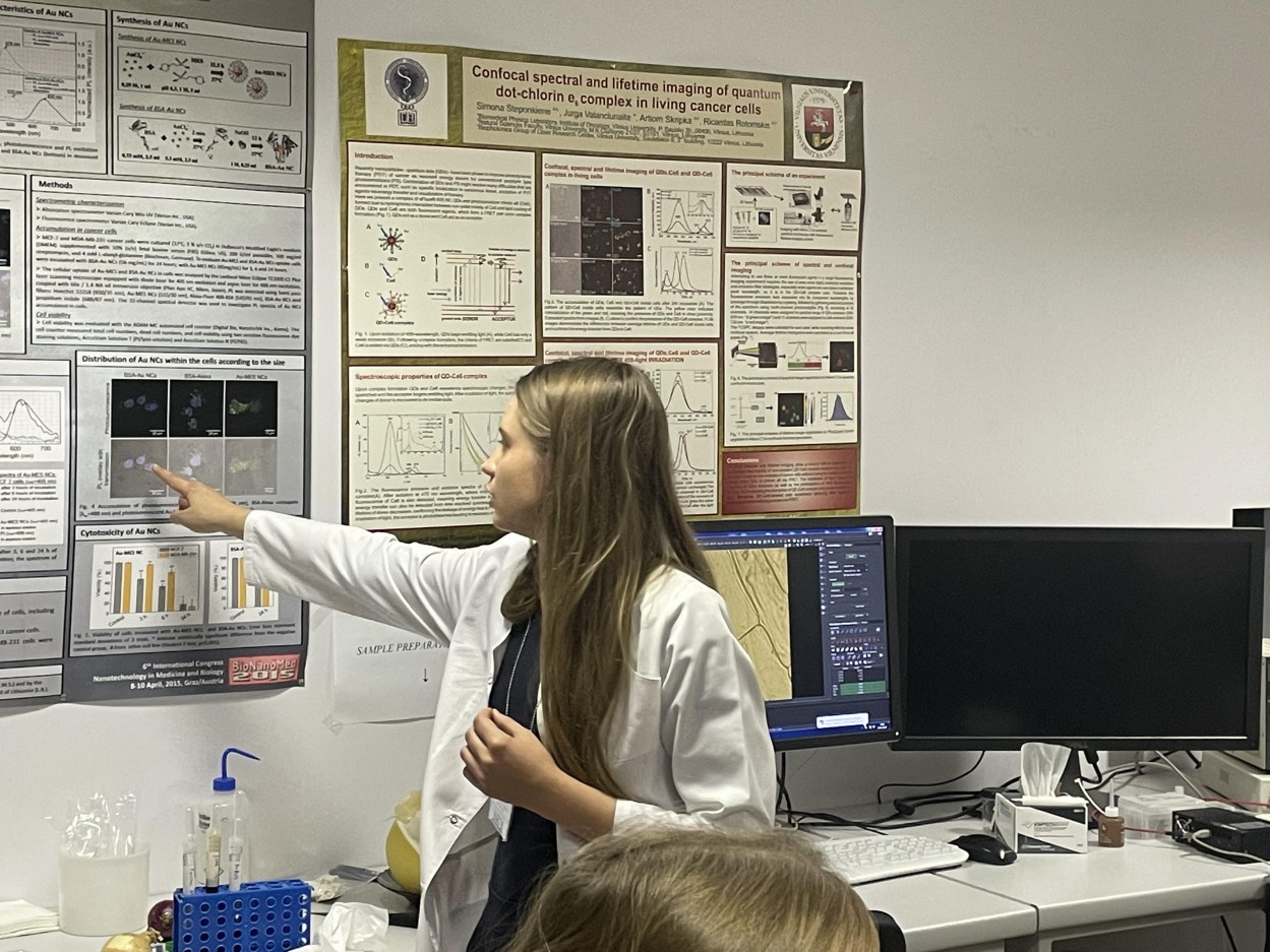 Lapkričio 9 d., trečiadienį, 3b klasės mokiniai keliavo į Vilnių, į Nacionalinio vėžio instituto mokslinį padalinį. Mokinius pasitiko ir edukaciją vedė UNESCO-L‘Oreal „Moterims moksle“ apdovanojimą gavusi mokslininkė, Nacionalinio vėžio instituto (NVI) jaunesnioji mokslo darbuotoja ir Vilniaus universiteto Gyvybės mokslų centro Biomokslų instituto biofizikos doktorantūros studijų krypties IV metų doktorantė Greta Jarockytė. Edukacijos metu mokiniai susipažino su mokslininko profesija ir mokslininkų vykdoma veikla, turėjo galimybę „prisiliesti“ prie įprastai neprieinamų moderniausių technologijų. Pažintinės veiklos metu mokiniai patobulino sveikatos saugojimo ir pažinimo kompetencijas - gilino žinias, susijusias su žmogaus ląstele, jos pažeidžiamumu, nanodalelėmis, vėžio prevencija, sveikatos saugojimu ir sveika gyvensena.