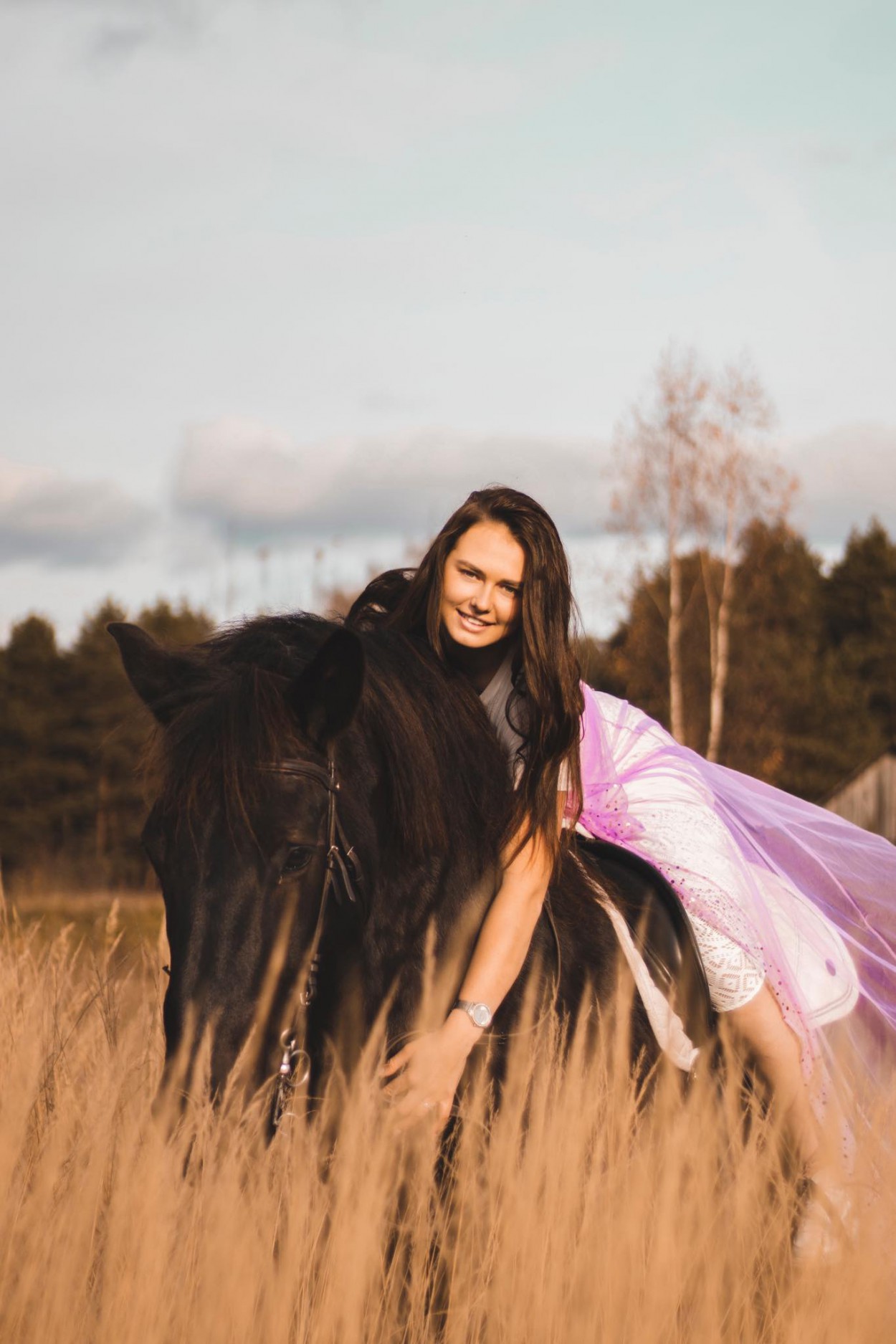 Vėliau pradėjau įkalbinėti mamą, kad ji leistų mane mokytis joti, nes tėtis buvo kategoriškas. Jis kartojo, jog galiu susižaloti, likti neįgalia, kad kojos bus kreivos (aut. past. šypsosi), bet aš gavau mamos užtarimą, pradėjau lankyti žirgyną ir taip žirgai tapo labai svarbia mano gyvenimo dalimi“, – pasakojo Rugilė.